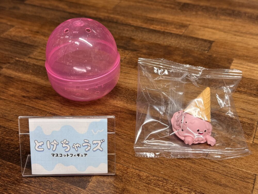 ピンク色のカプセルに入っていたのは「アイスクリーム」でした。そういえばこのシリーズ、マスコットの入った袋がカプセルトイには珍しいしっかりした袋に封入されてます。