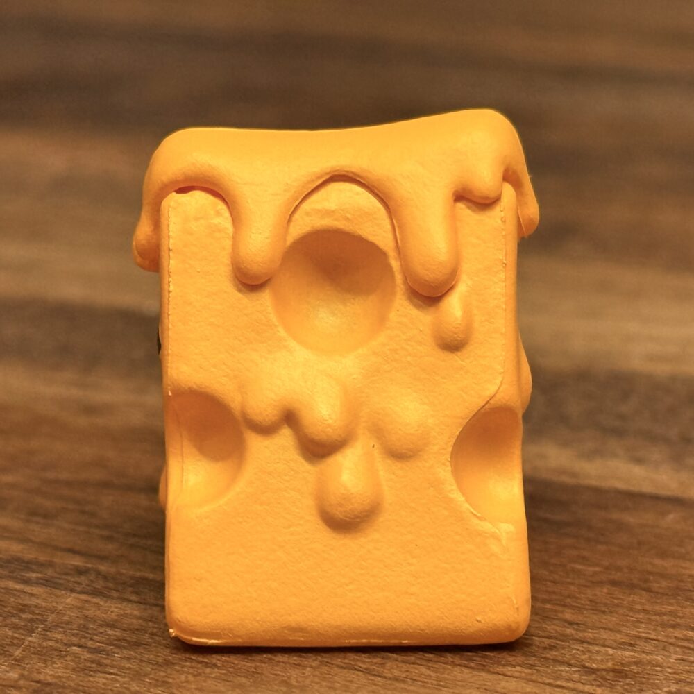 ぐったりしている表情が可愛いですね。チーズアイ(穴)が多い程、高品質なエメンタールって言われてるそうなので、こう見えてだいぶ立派なチーズなのかも知れませんね。