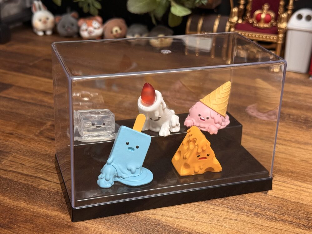 DAISOで買える「ミニコレクションボックス」に飾ってみた。やっぱりカプセルトイのマスコットにぴったりなサイズ感!しかもひな壇台座が外せる親切設計。