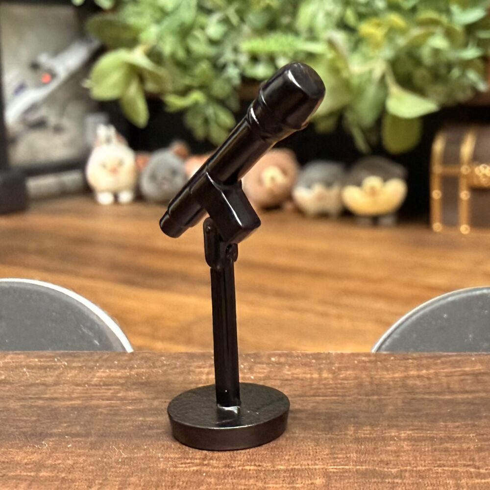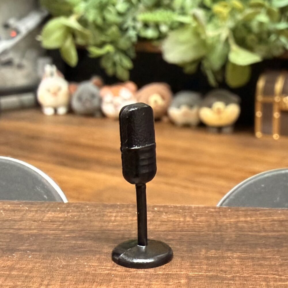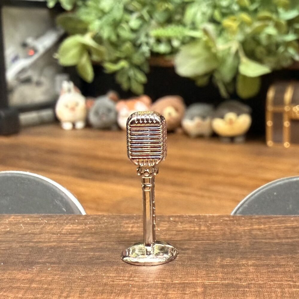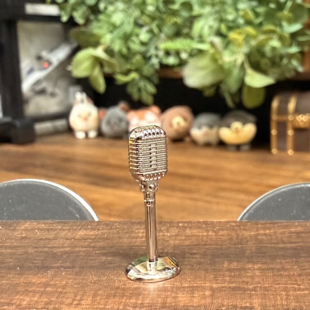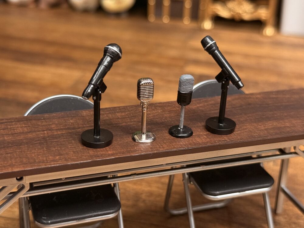 記者会見のテーブルに置かれているあのマイクが実物の様なダイキャスト製の1/12スケールのミニチュアになって樹脂粘土ミニチュアでお馴染みのRAINBOWから発売されました。