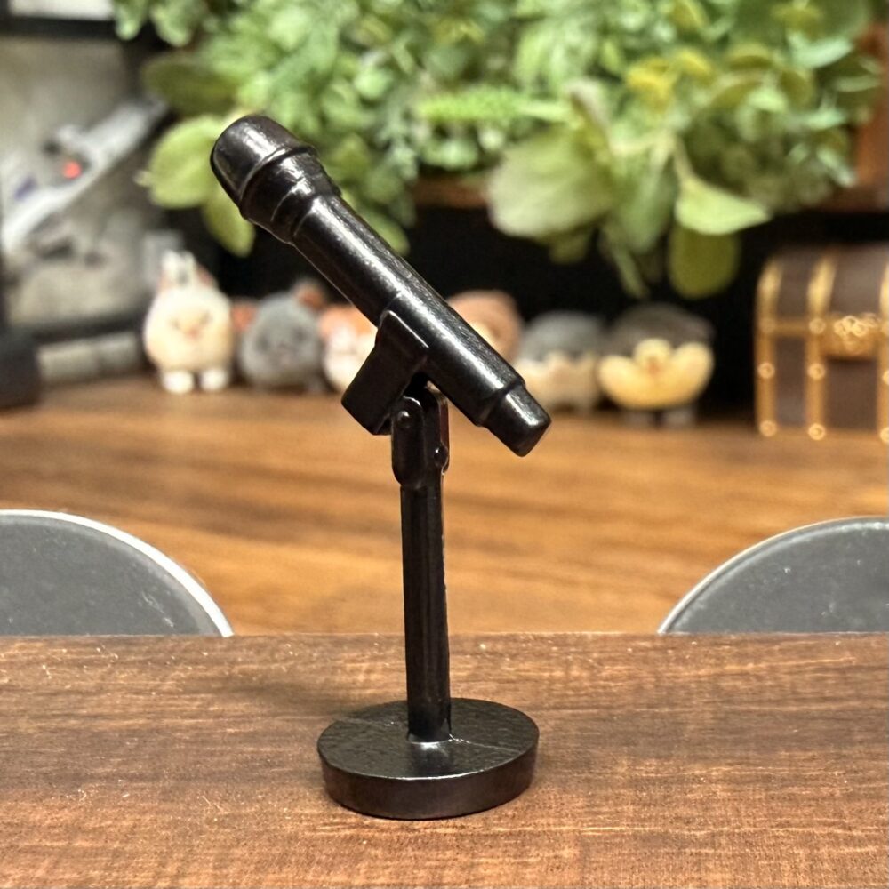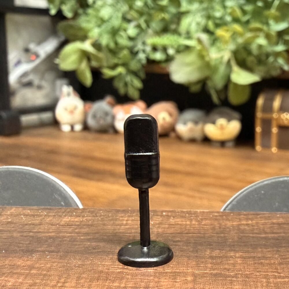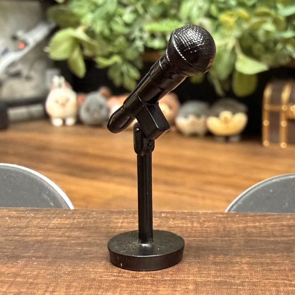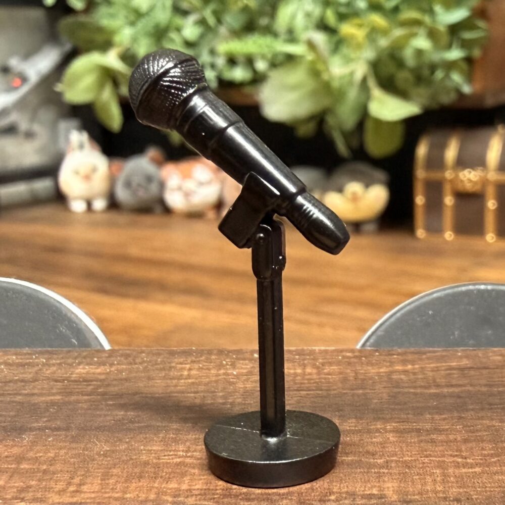 記者会見のテーブルに置かれているあのマイクが実物の様なダイキャスト製の1/12スケールのミニチュアになって樹脂粘土ミニチュアでお馴染みのRAINBOWから発売されました。