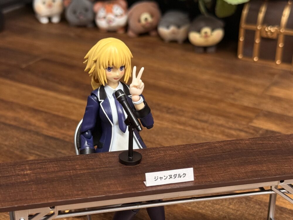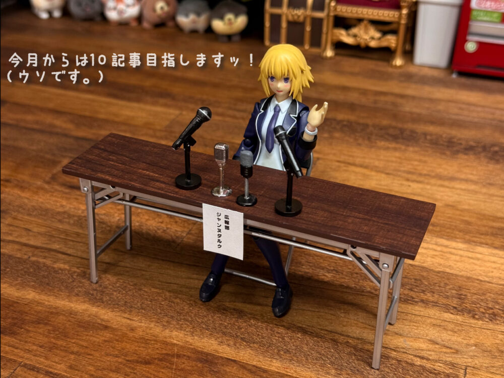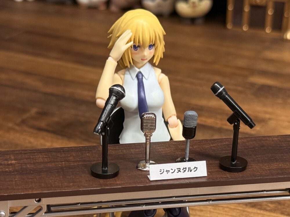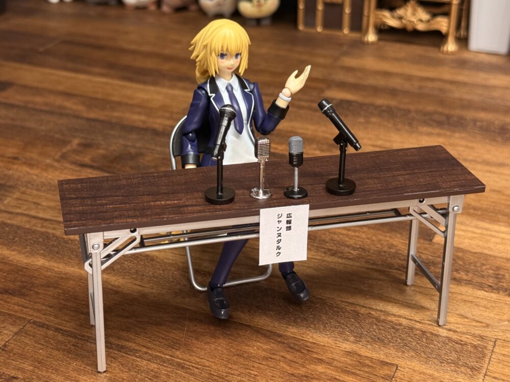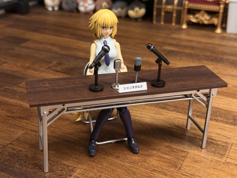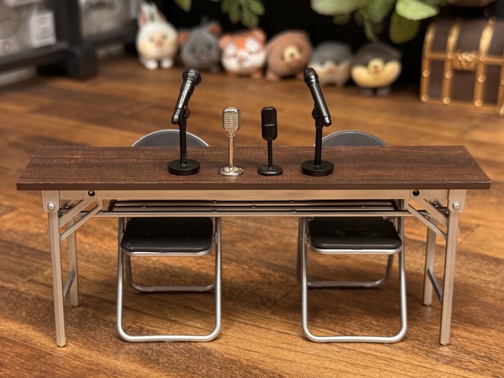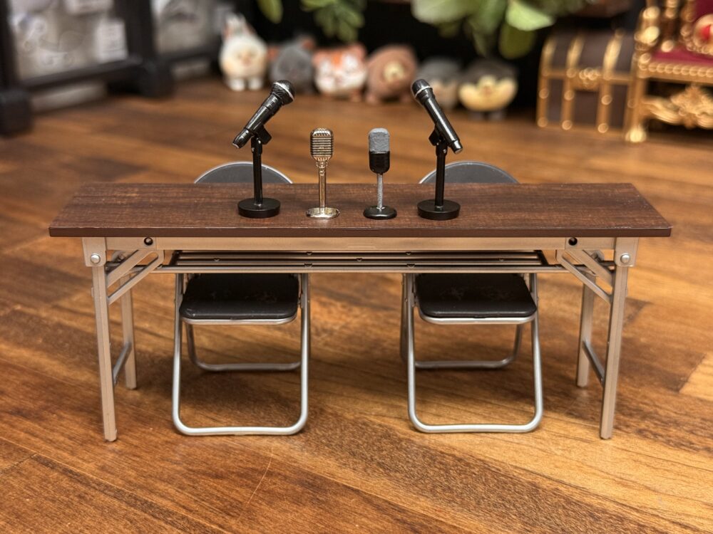 「ミニチュア会議机」の上にネームプレートを置くだけで更に記者会見っぽくなったと思う。