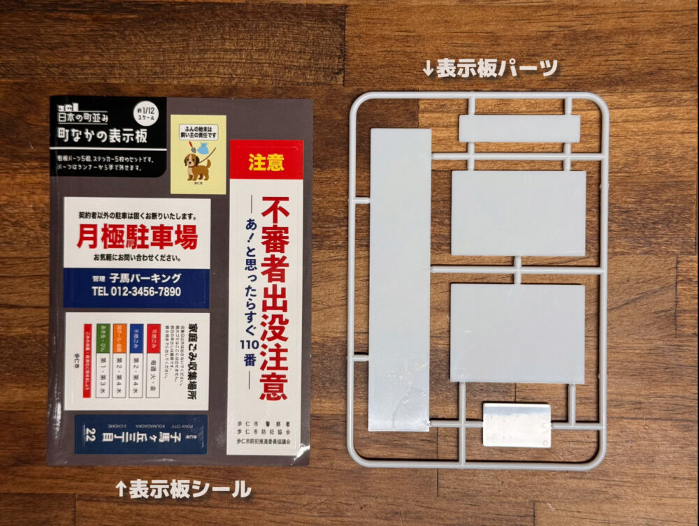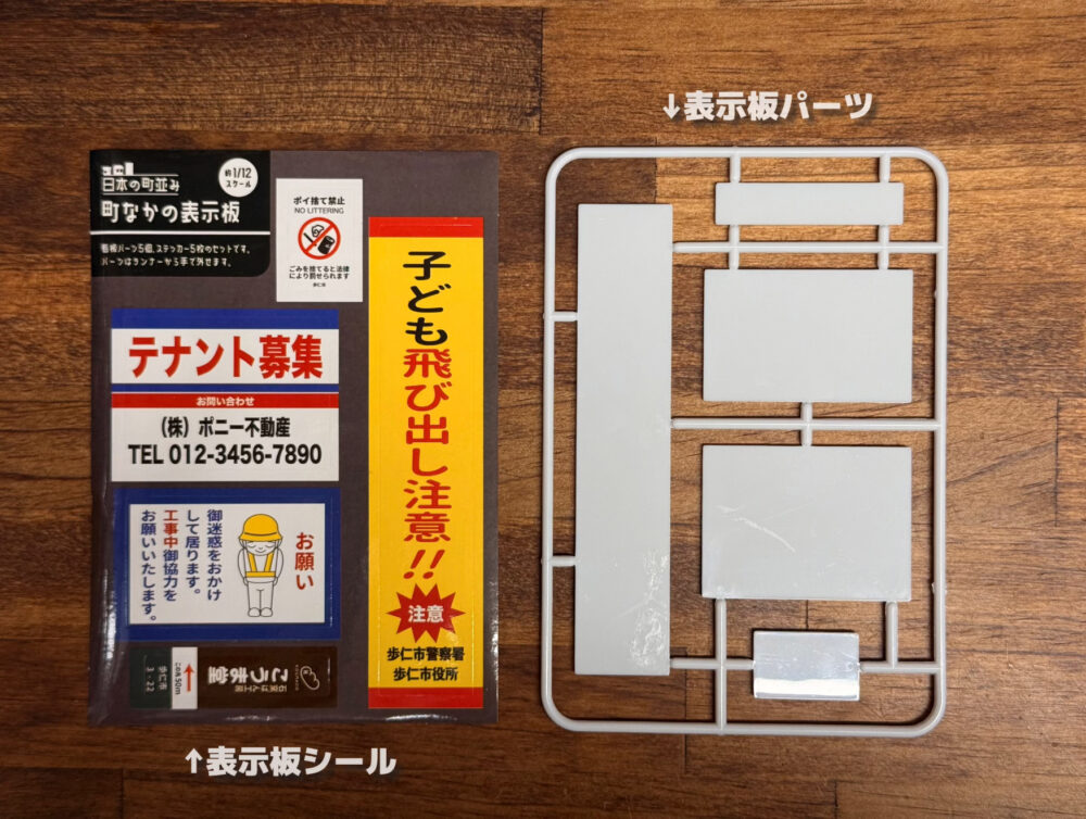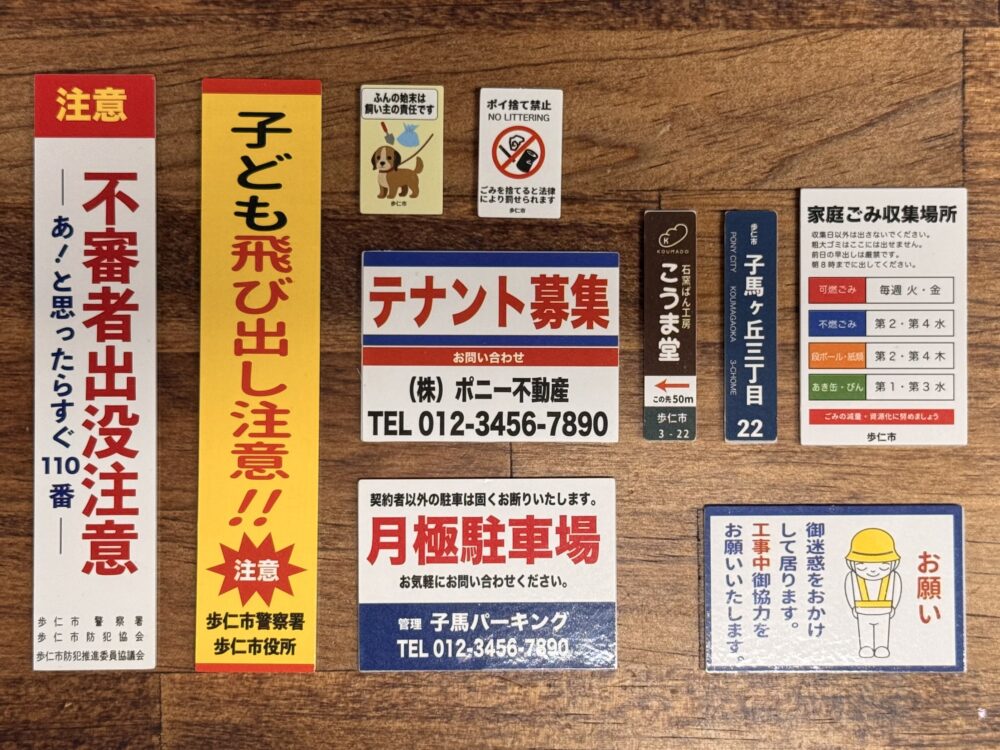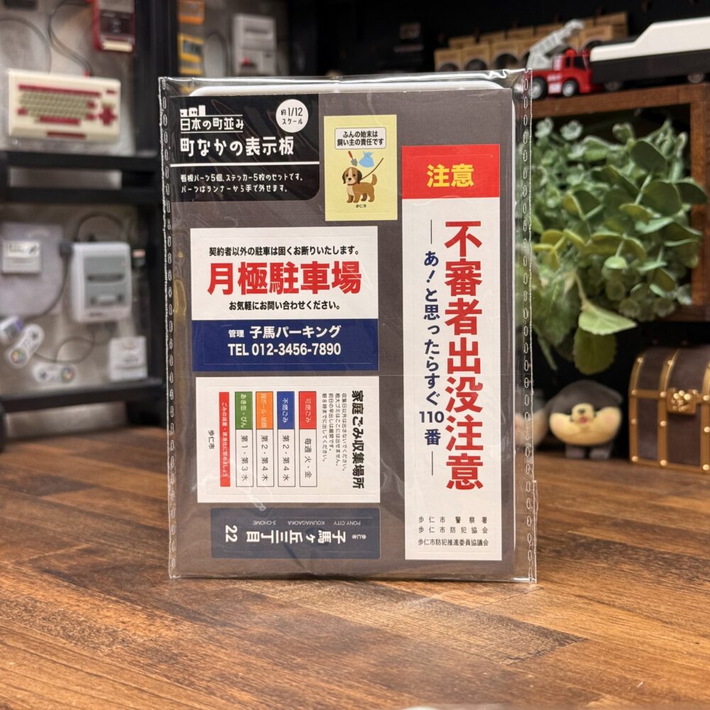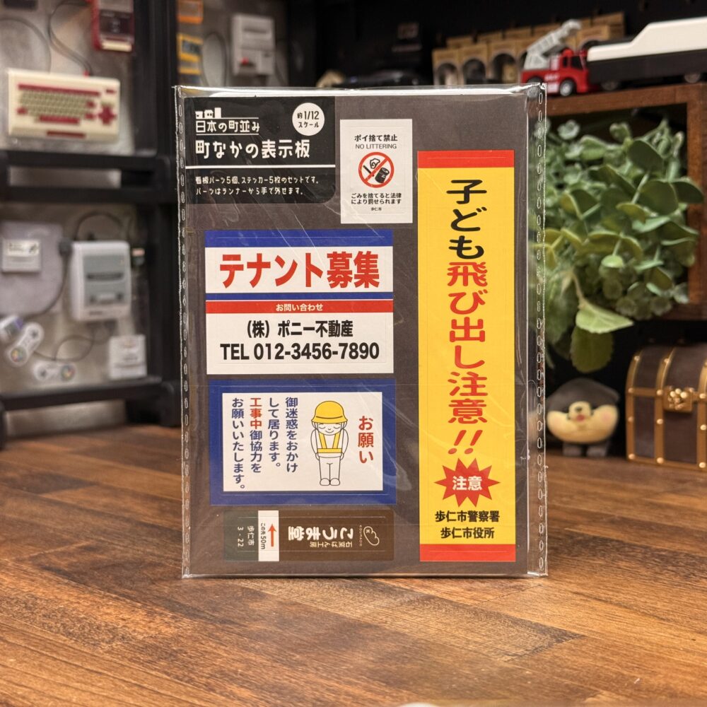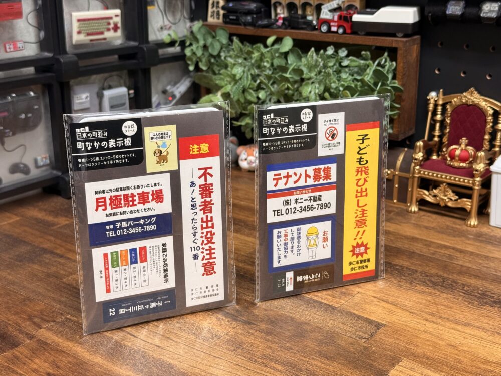 町中のあちこちで見かける表示板までもミニチュアになりました。こちらは全2種類のラインナップが存在し、こちらについては約1/12スケールとの表記されてます。