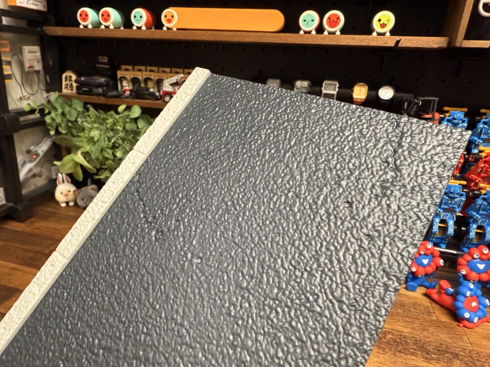 アスファルトの表面は凸凹していてリアルですが、もうちょっと質感がマットな感じだともっと良かったと思います。