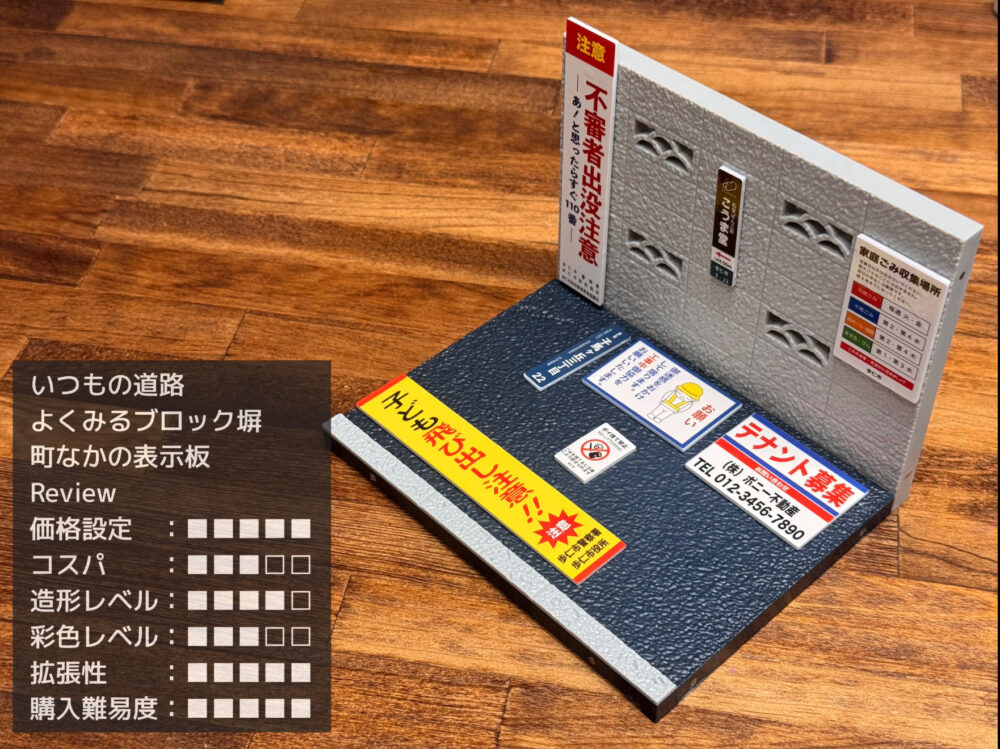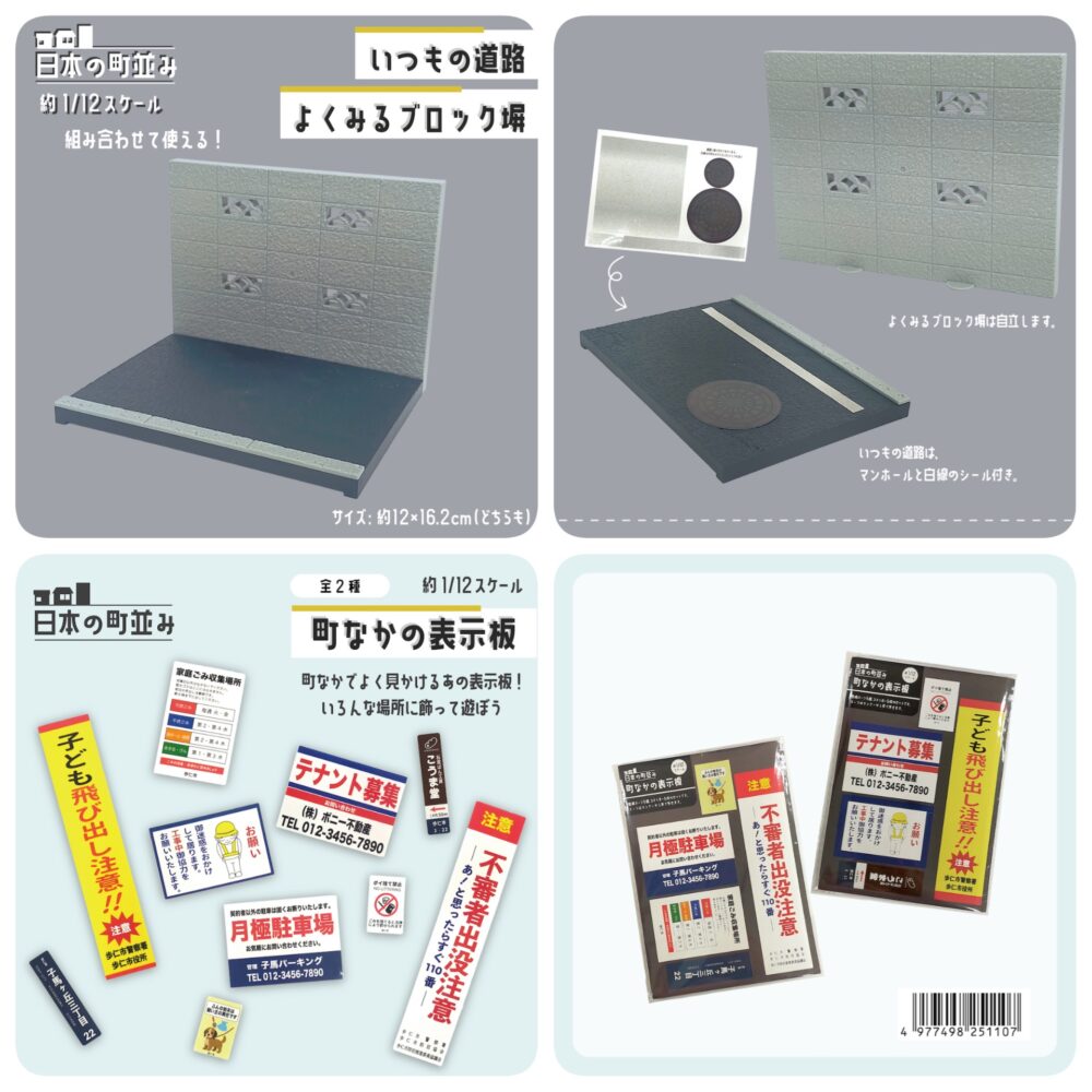 価格の方は¥110なので気にせずたくさん集められるのはGoodです。今回の「いつもの道路」や「よくみるブロック塀」はたくさん並べて遊びたくなるやつです。