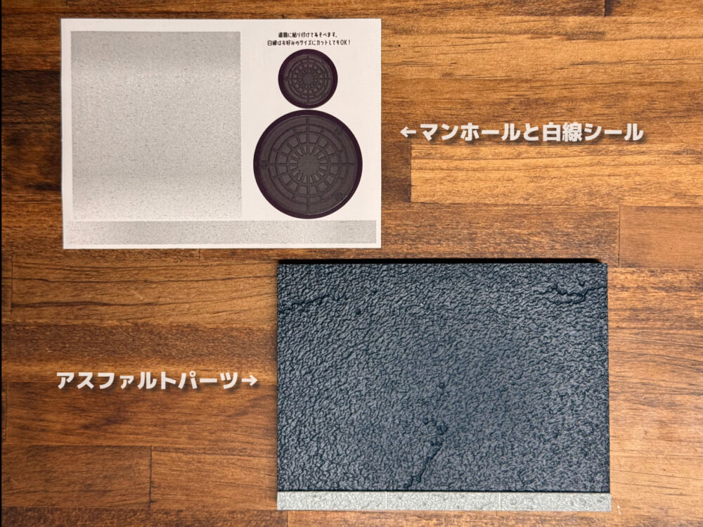 | 内容物 | アスファルトパーツ×1枚・マンホールと白線のシール |
