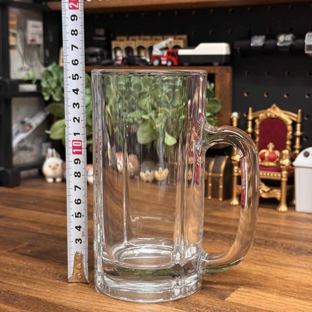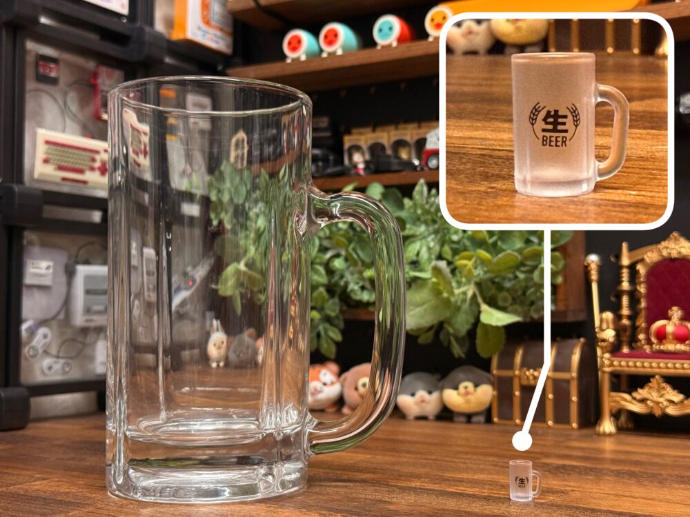 偶然にもおもちゃ部屋に中ジョッキがあったのでミニチュアのジョッキと大きさを比較してみました。