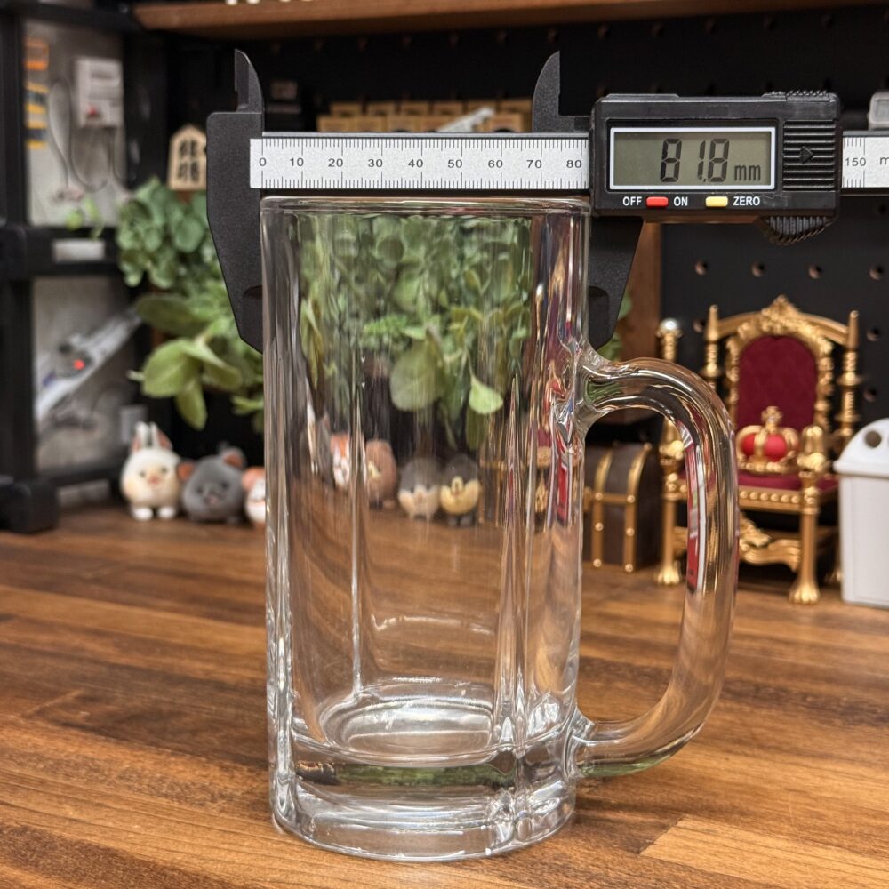 まずはミニチュアジョッキの高さと口部外径の測定。