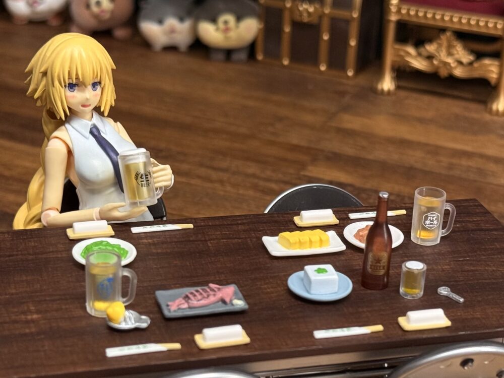 中身が取り外しできるジョッキなので中身を取り出したジョッキをフィギュアに持たせるだけで「生中1つ!」って聞こえてきそう。