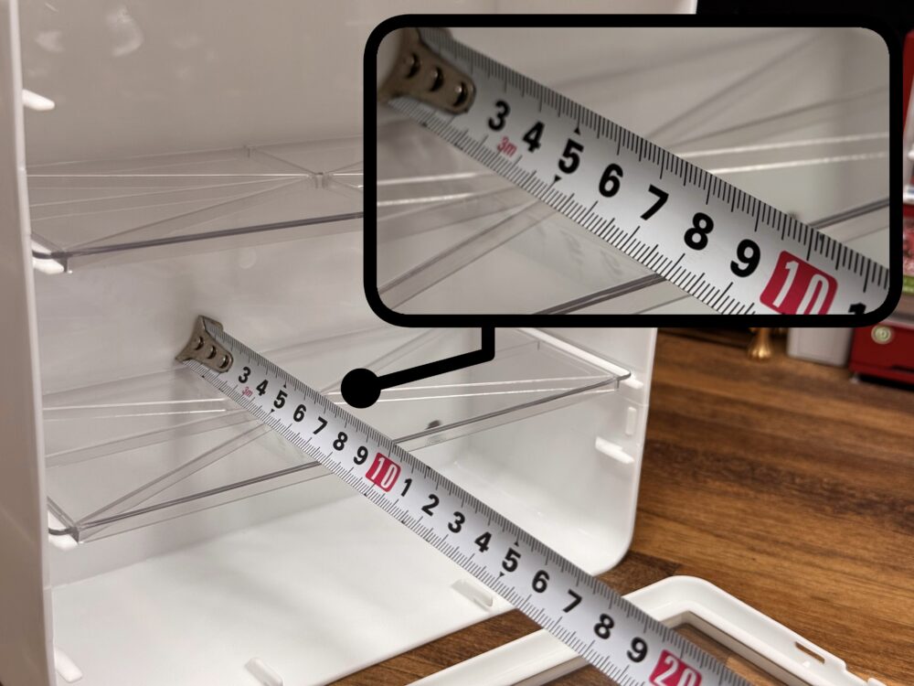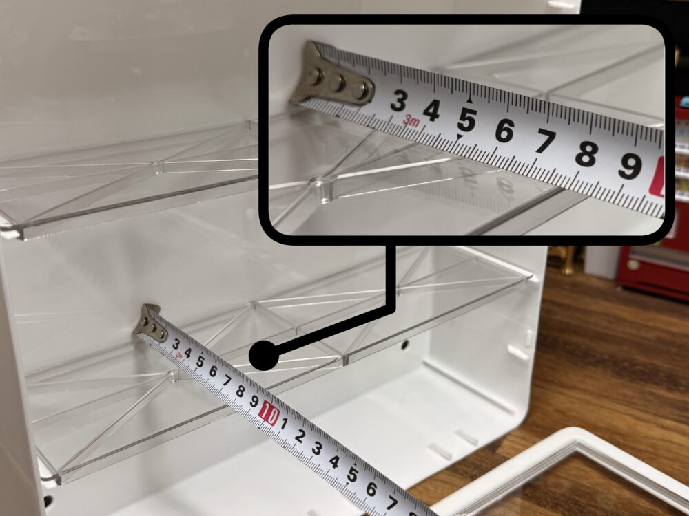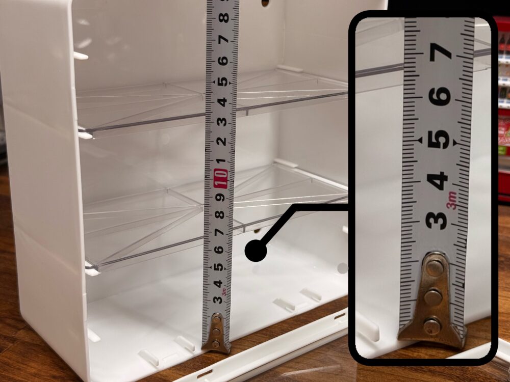 Mサイズの棚板までの高さは約60mmとなっていて、Lサイズより本体も小さい分、高さも低くなってますね。