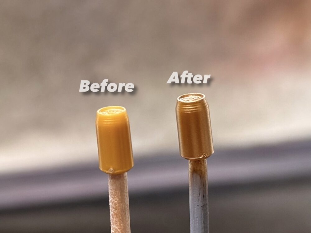 こちらがアクリル塗料で塗装した「before after」です。やっぱり塗装をすると成形色では出せない金属感が出て良いですよね。