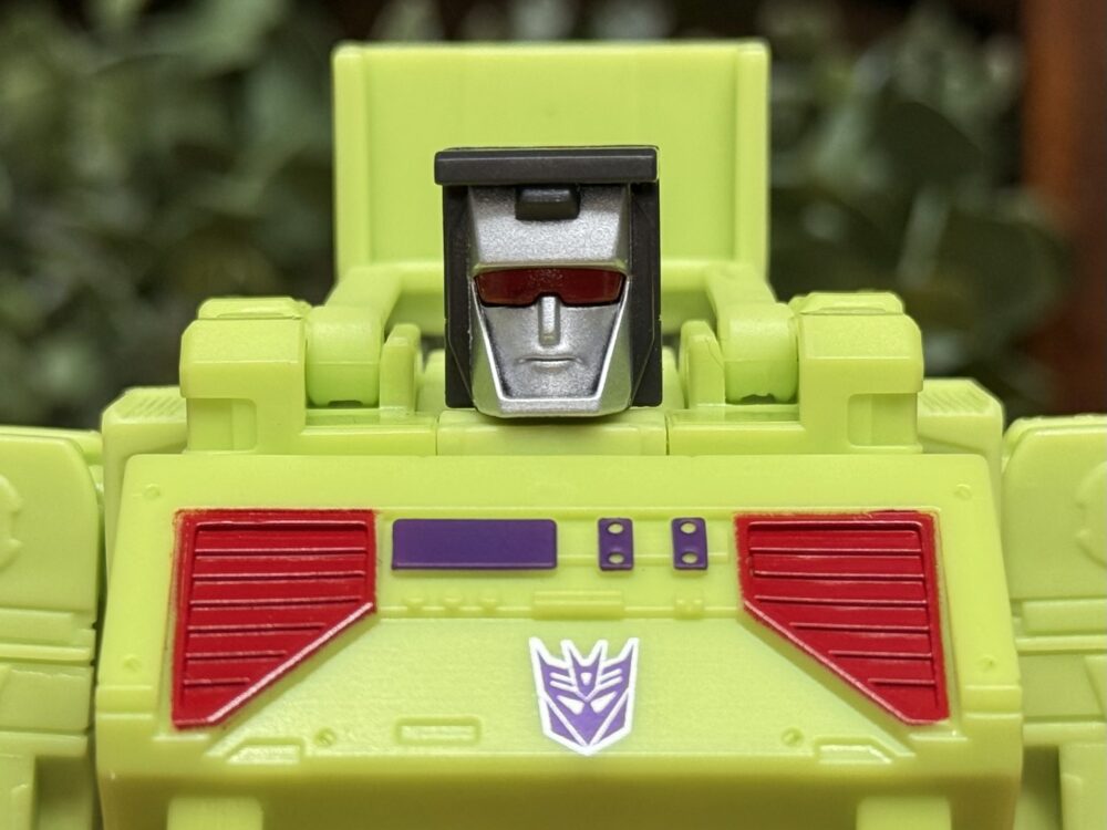 胸部分にはディセプティコンのマークがプリントされていて、赤色と紫色の塗装が施されています。