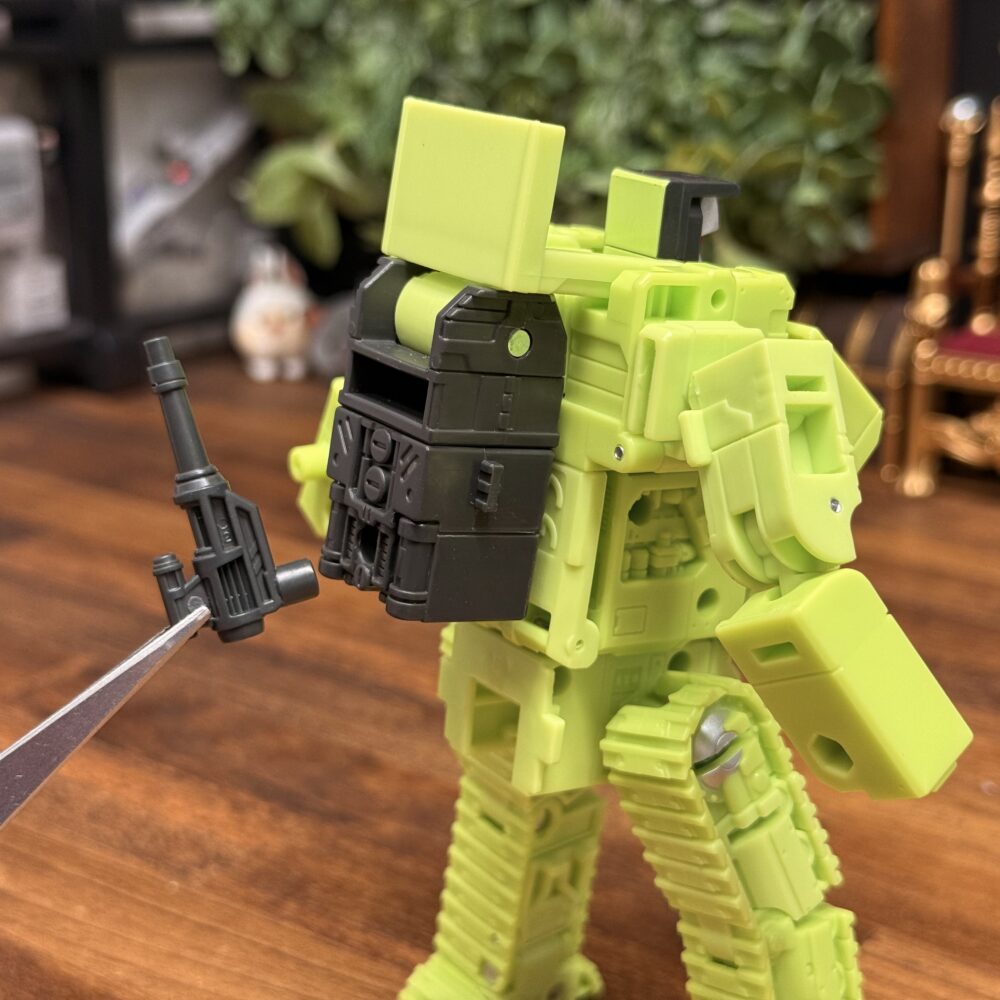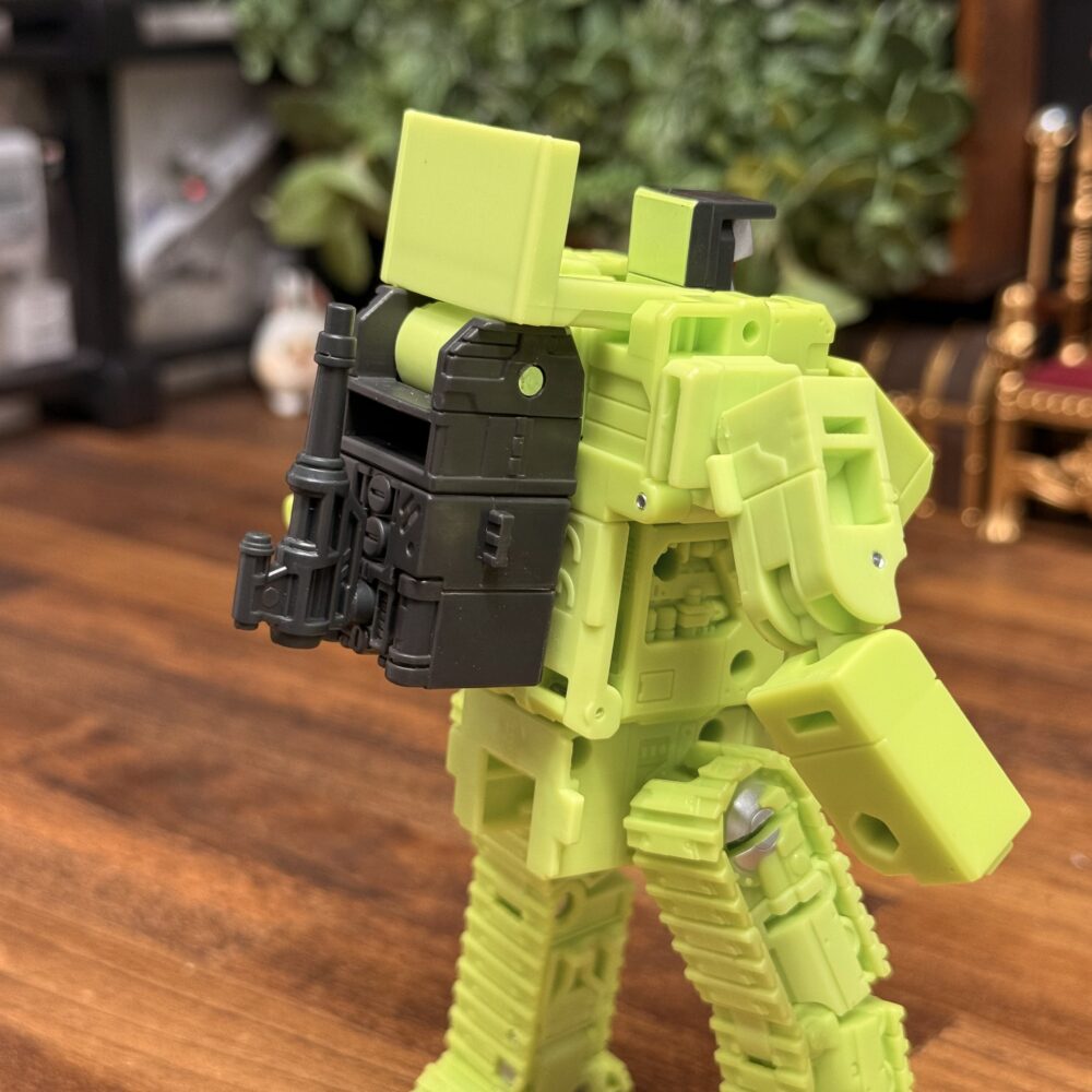 ボーンクラッシャーの裏側。黒色のバックパックを背負ってます。6体合体する時に腕になるのでこのパックパックに手首パーツが付くと思われます。