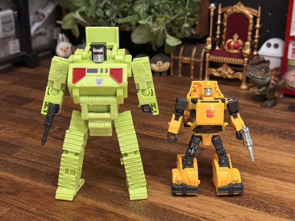 BLOKEESのボーンクラッシャーのビークルモードと並べるとこんな感じ。BLOKEESの毒々しい感じも好きですが、スタジオシリーズのボーンクラッシャーの黄緑色の方が個人的には好きですね。