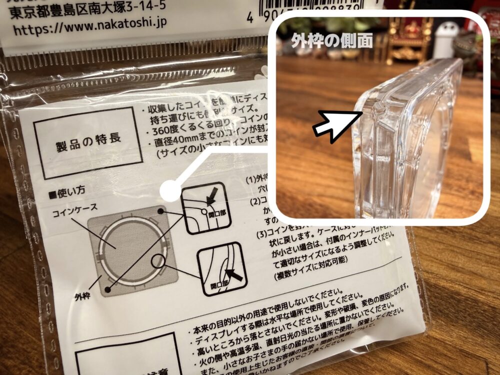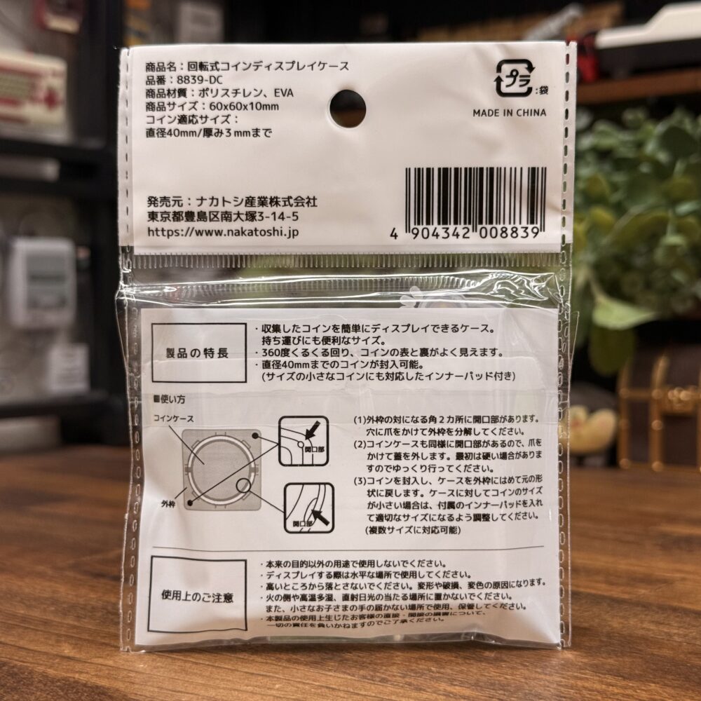 内容物は「回転式コインディスプレイケース」のみですがサイズ調整する為のインナーパッドは中に入った状態で封入されていました。