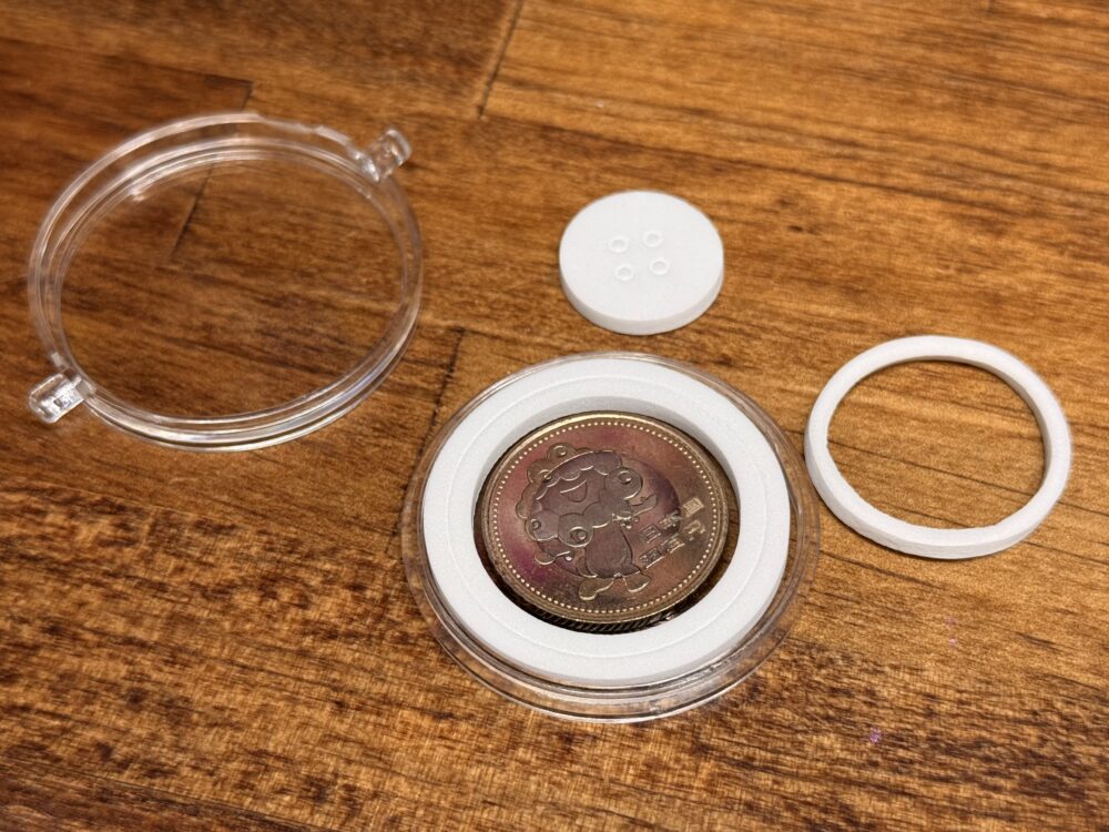 ディスプレイしたコインの両面を簡単に見比べれるのも良いですが、ハンドスピナーの様なフィジェットトイ的な遊びができるのが最高ですよ。