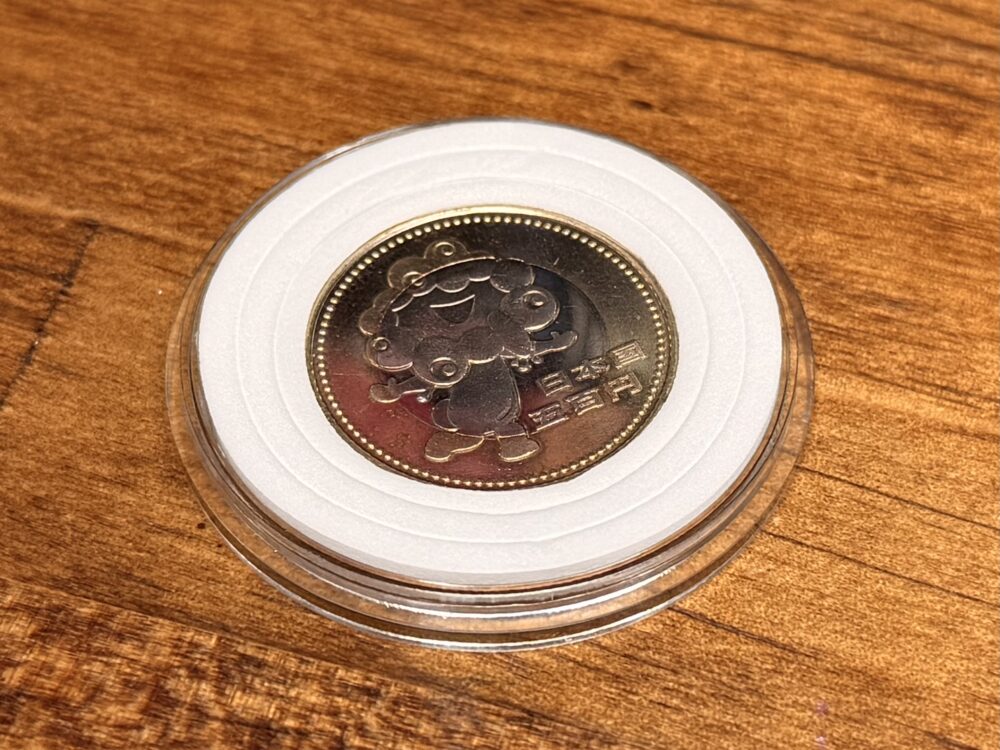 それでは実際にコインを入れていきたいと思います。今回は2025年大阪・関西万博を記念して発行されたミャクミャクコインを使います。