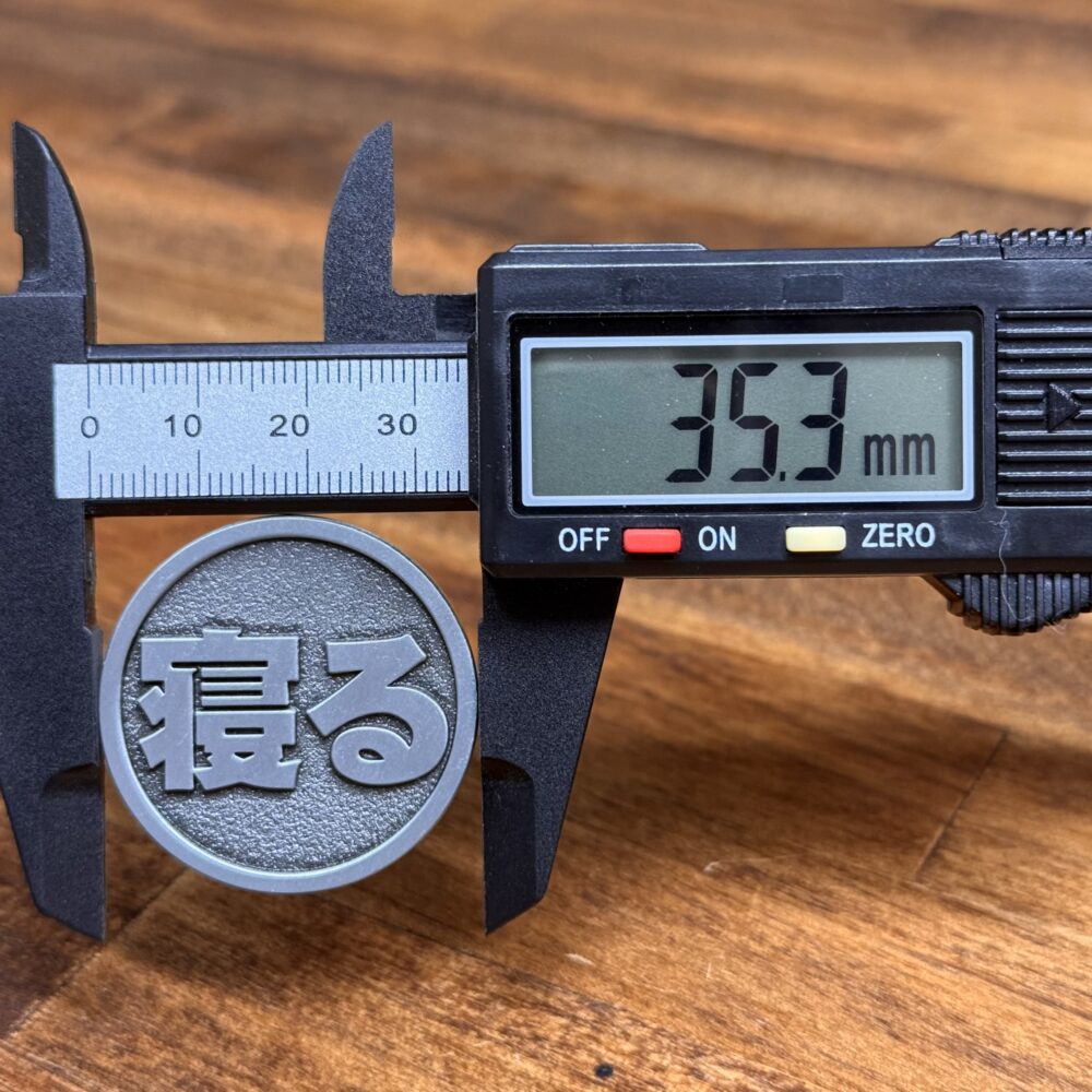 それではうちにある硬貨以外のコイン「運命のコイン」を飾る前にコインの大きさを測りました。パッケージのコイン適応サイズには直径40.0mmと厚さは3.0mmと記載されてましたので「運命のコイン」の直径35.3mmと厚さ3.1mmは許容範囲内だと思います。