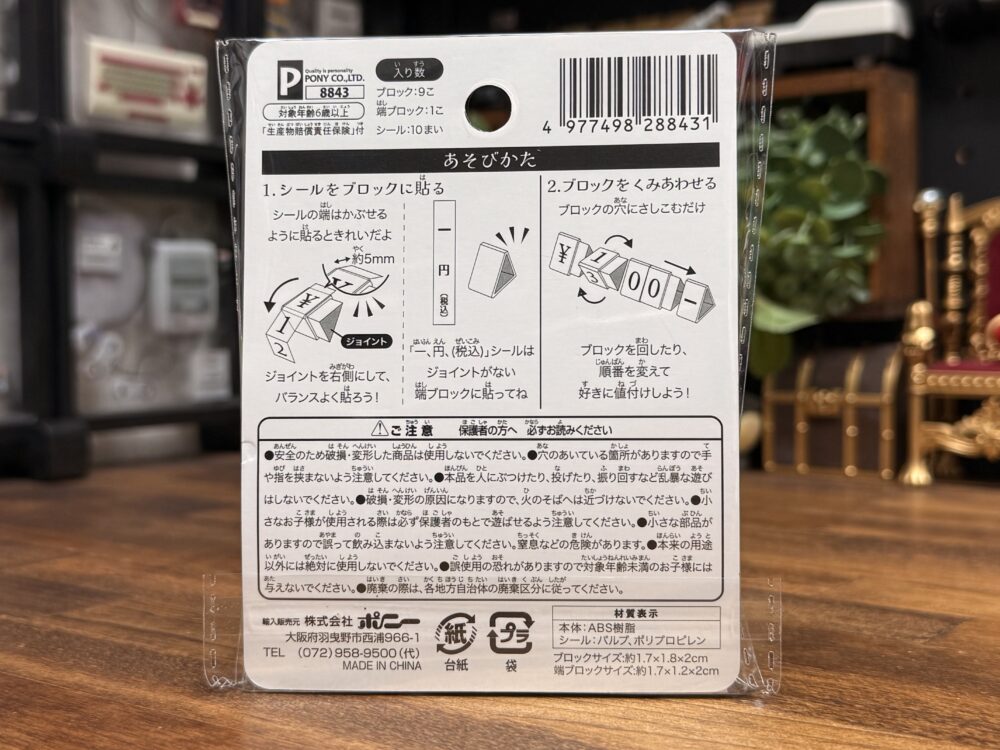 100円ショップで様々なおもちゃの販売を手掛けているポニーから発売された。なんでも簡単に値付けが楽しめる「プライスブロック」が発売されました。