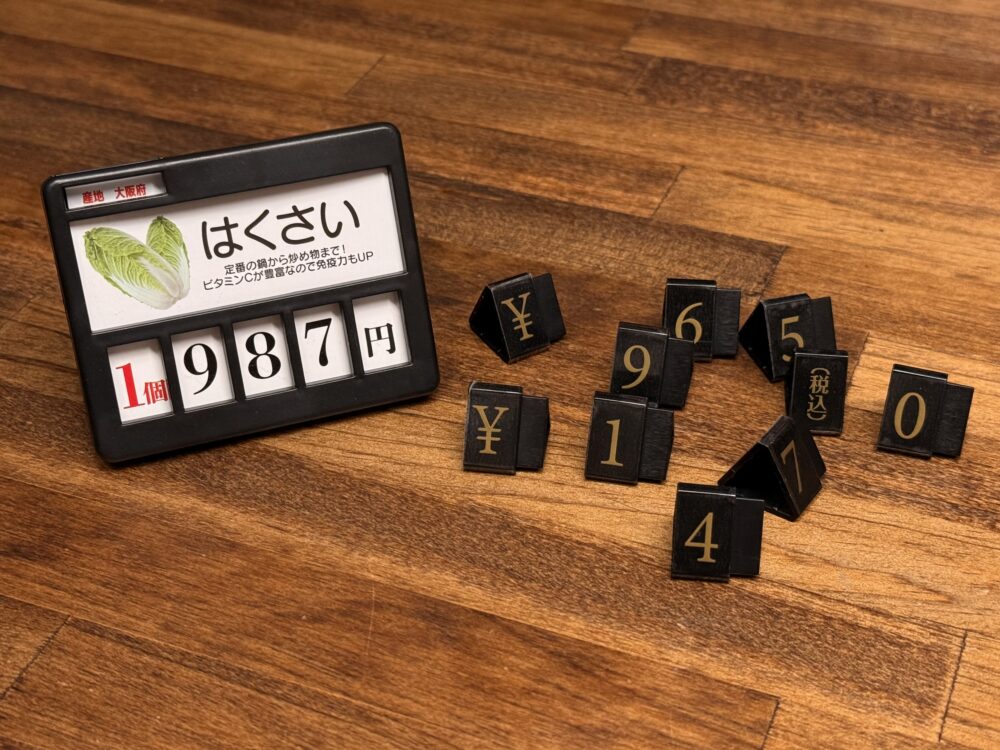 実際に商品の前に「プライスブロック」を置くとこんな感じになります。
