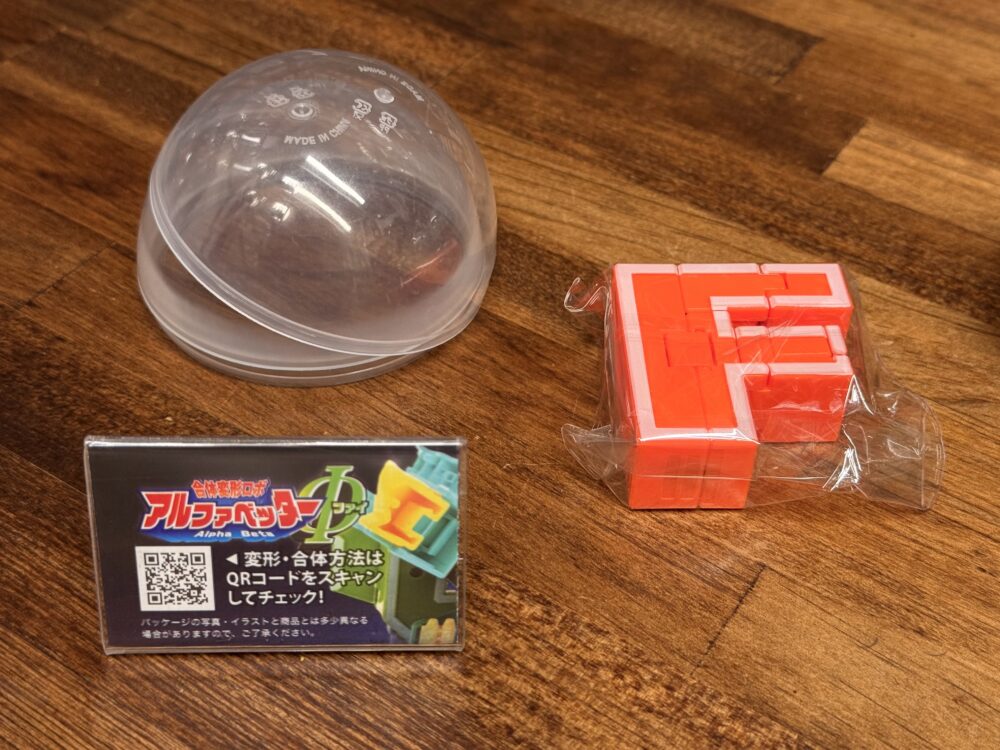 袋から取り出した「F」がこちら。ちゃんとアルファベットの姿でカプセルに入ってました。