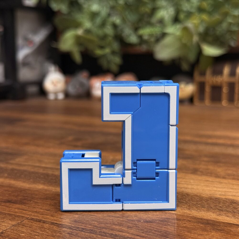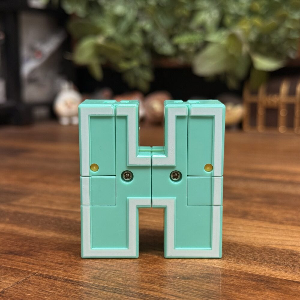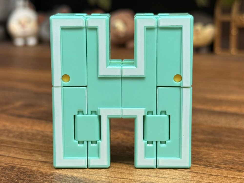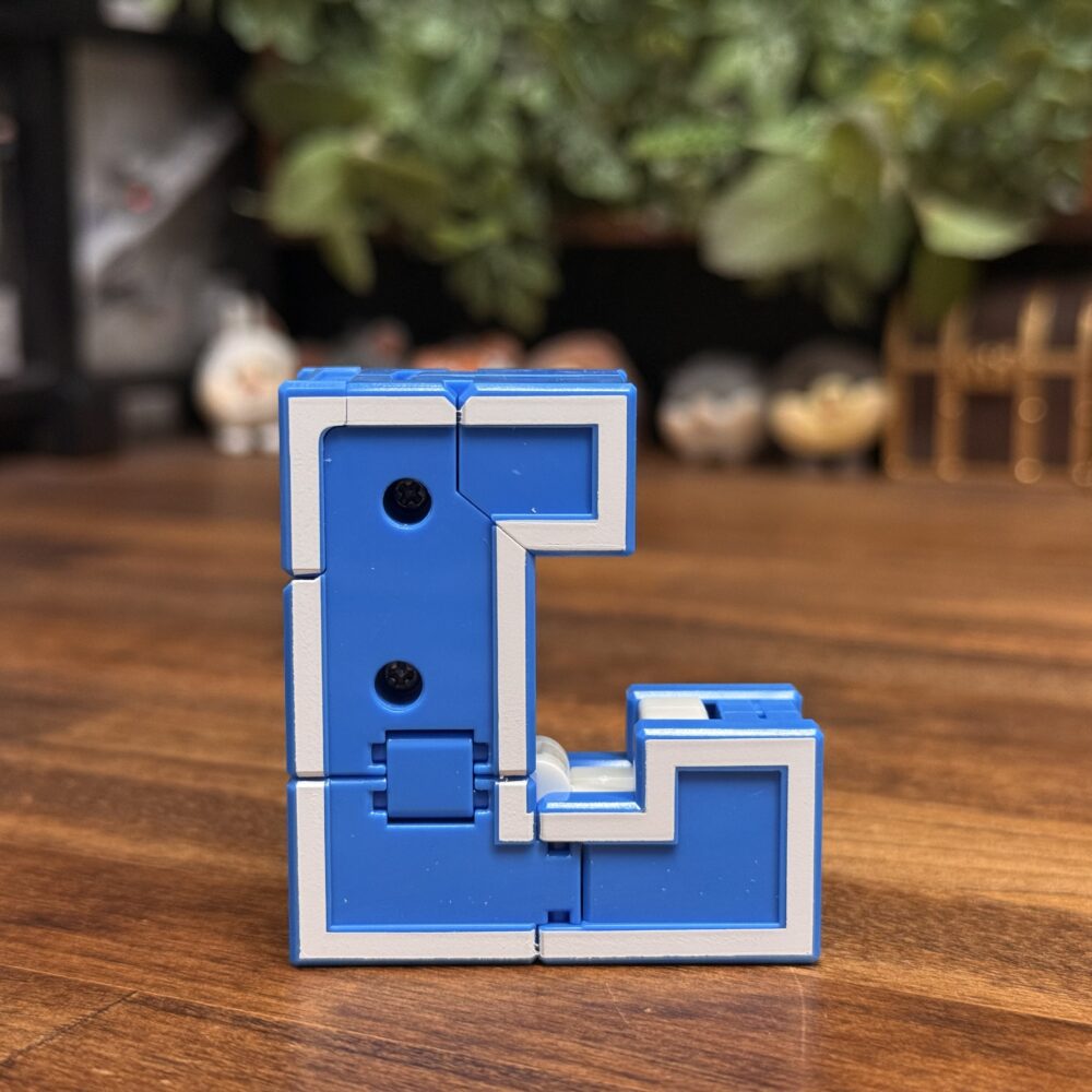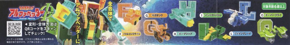最後に紹介しますが、同じアルファベットからロボットに変形する「アルファボット」は片面しかアルファベットの形がしてなかったのに対し、今回の「アルファベッター」は両面がアルファベットの形をしていました。