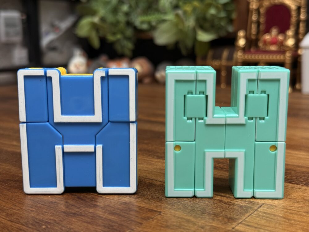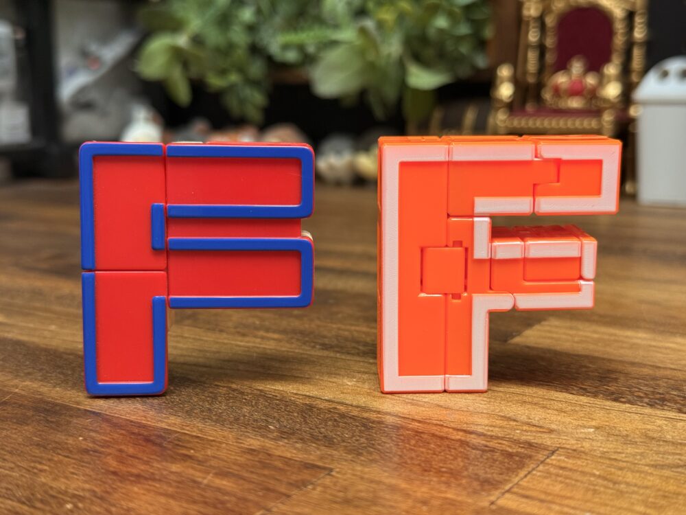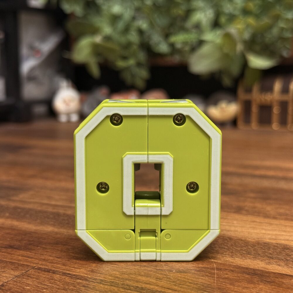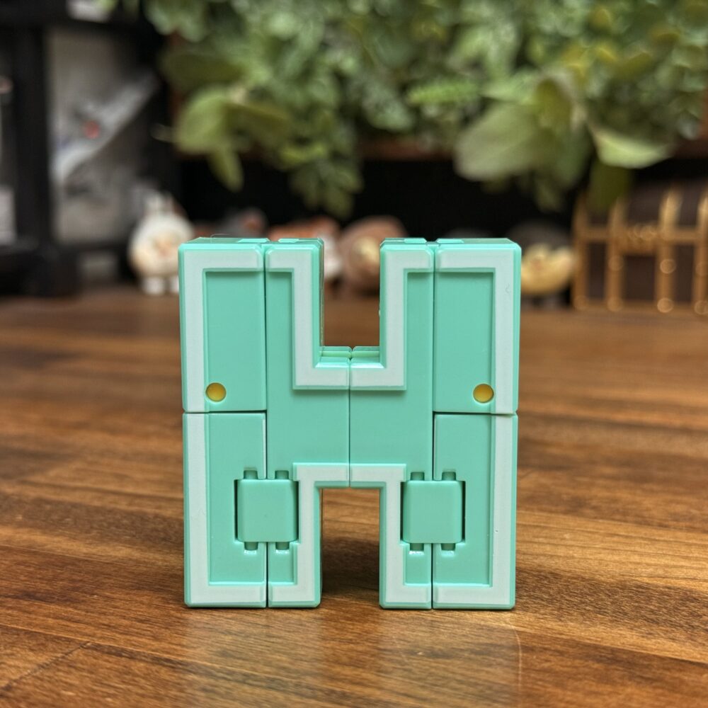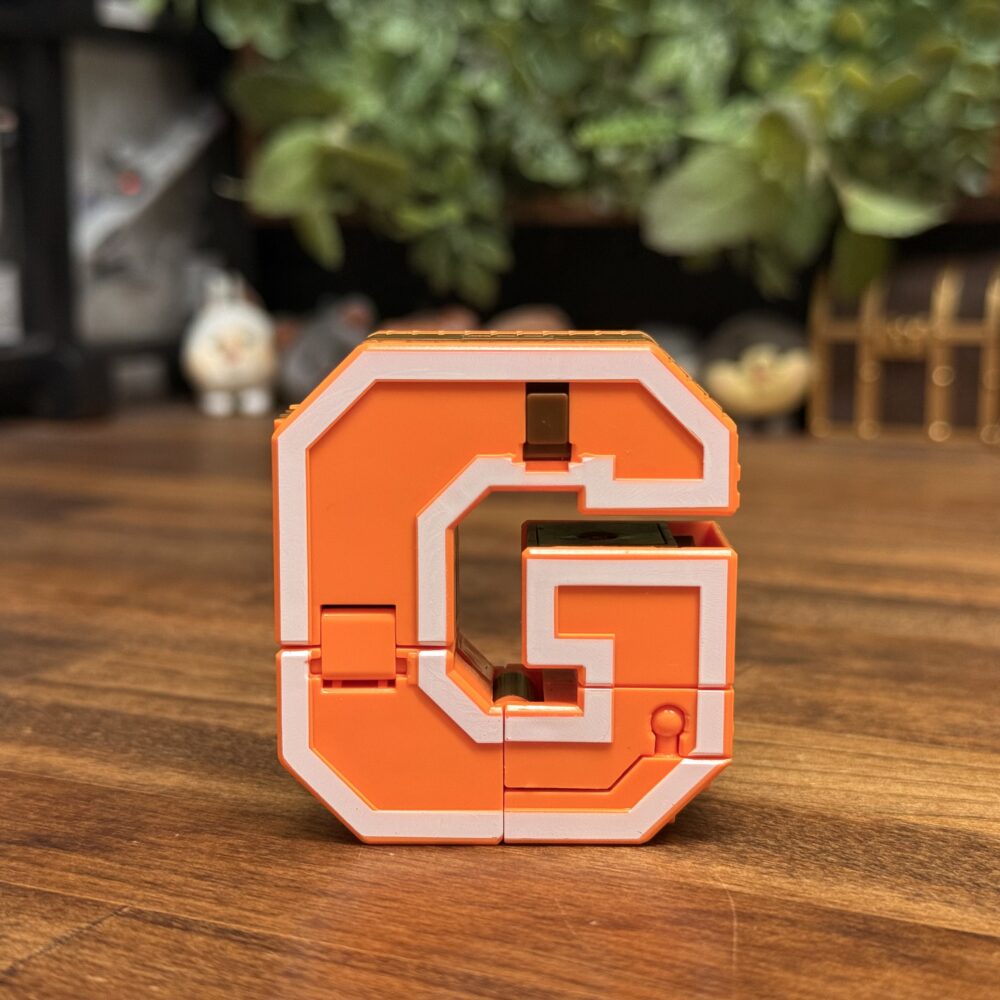 最後に紹介しますが、同じアルファベットからロボットに変形する「アルファボット」は片面しかアルファベットの形がしてなかったのに対し、今回の「アルファベッター」は両面がアルファベットの形をしていました。