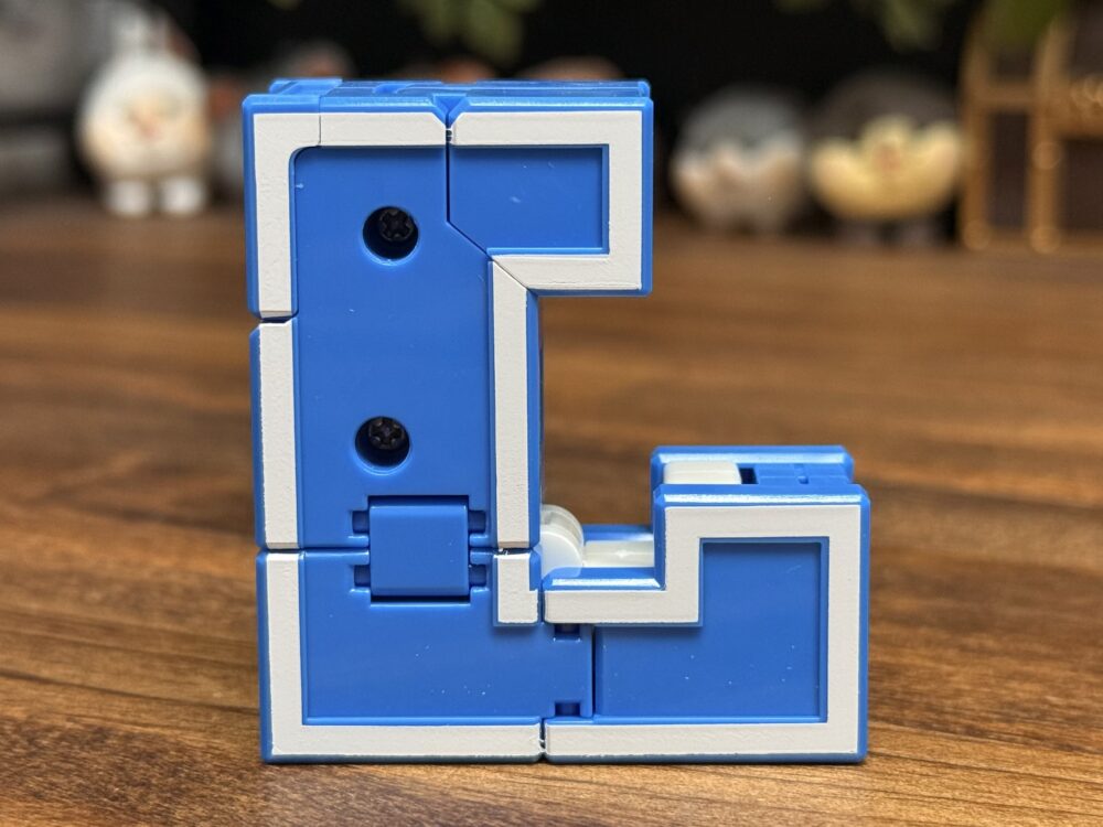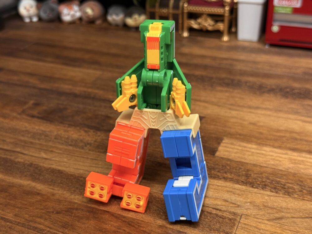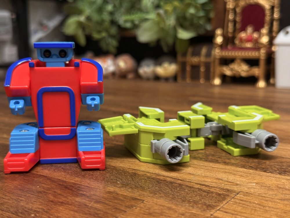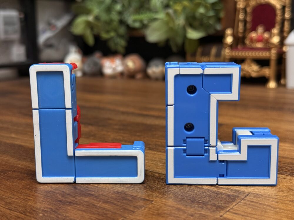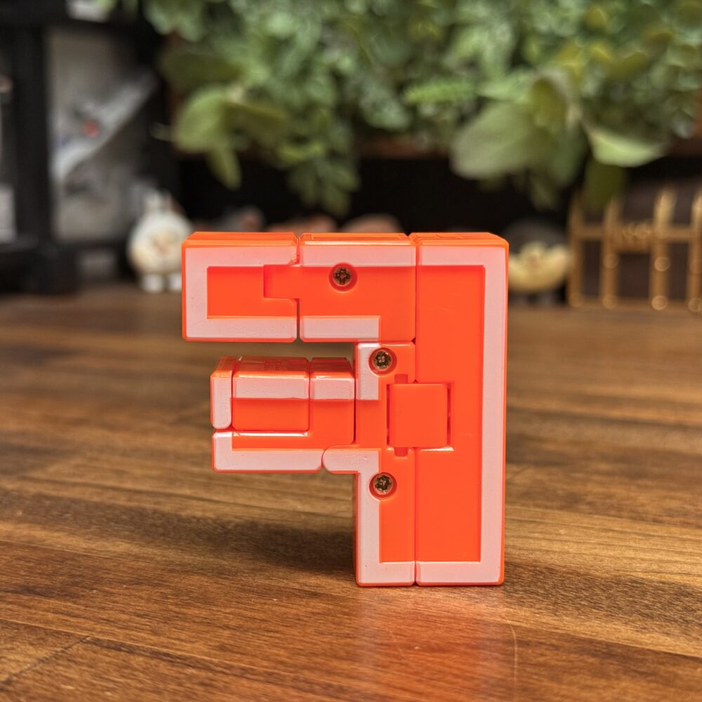 小さい幼児向けの知育玩具「アルファボット」とは比べものにならないレベルの変形工程です。買うまではパーツを開いたり、パーツを伸縮させるだけのギミックだと侮ってました。