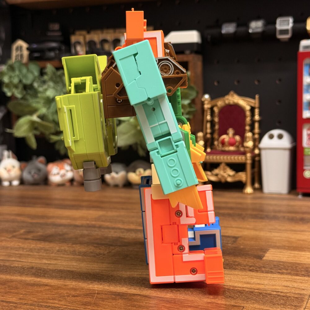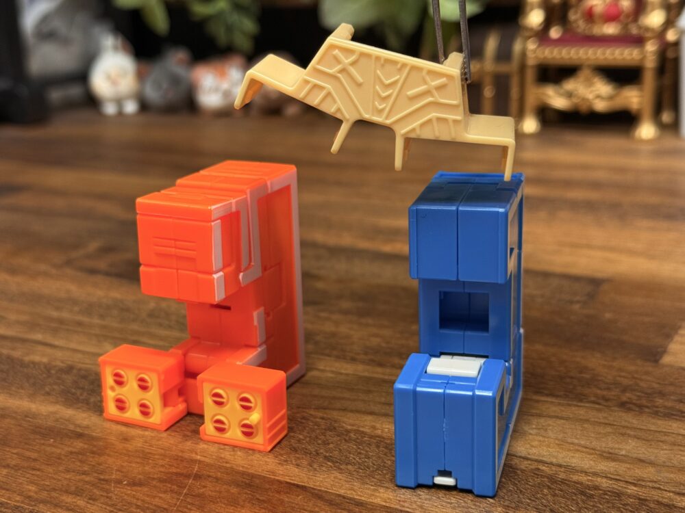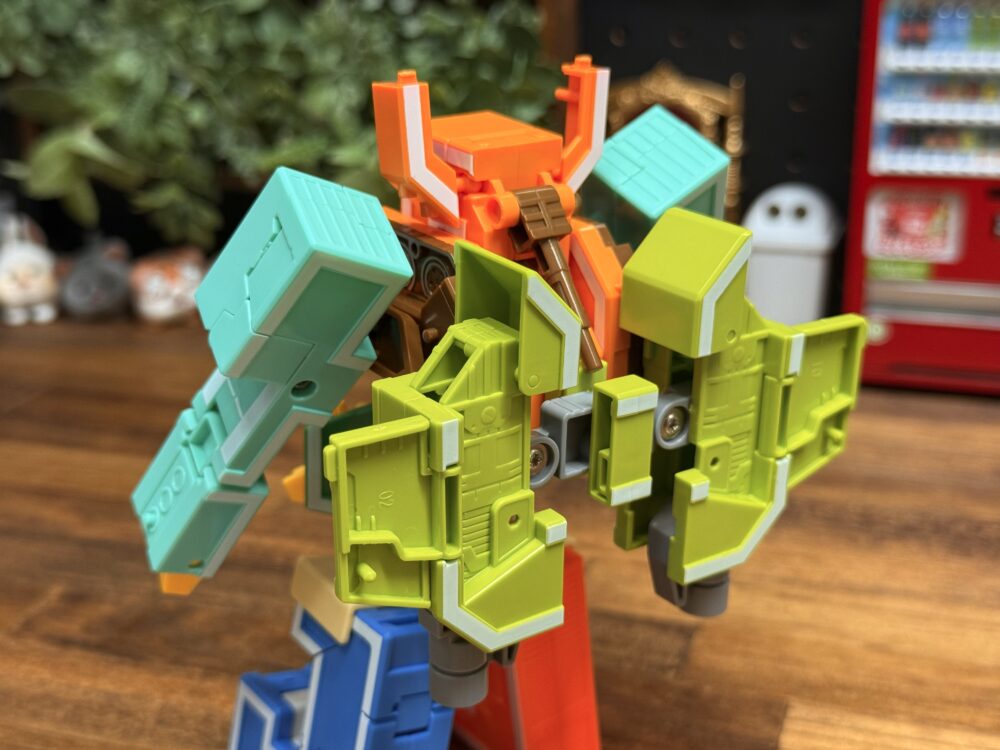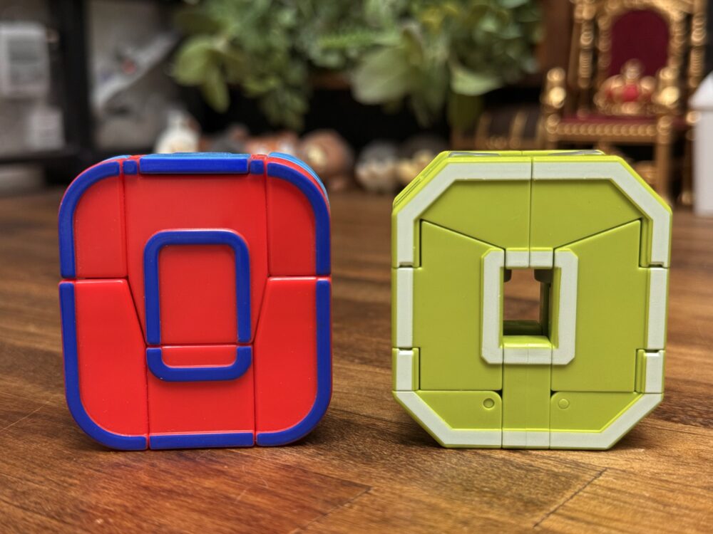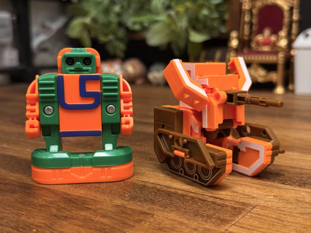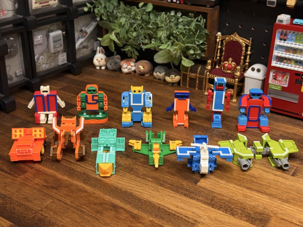 小さい幼児向けの知育玩具「アルファボット」とは比べものにならないレベルの変形工程です。買うまではパーツを開いたり、パーツを伸縮させるだけのギミックだと侮ってました。