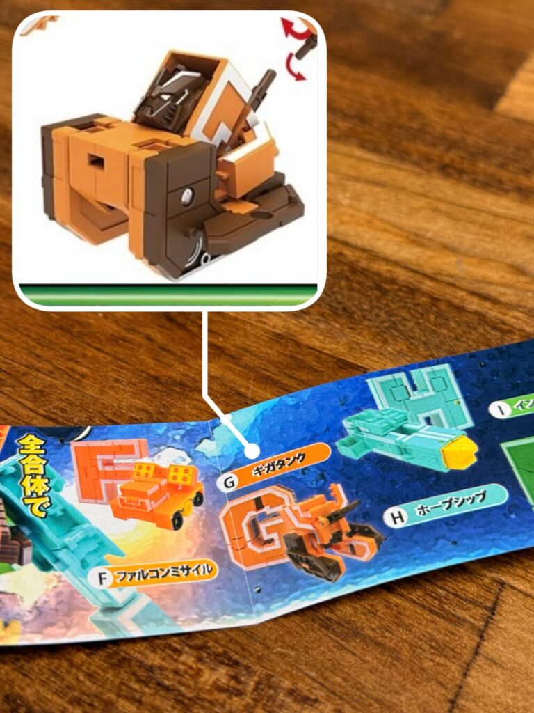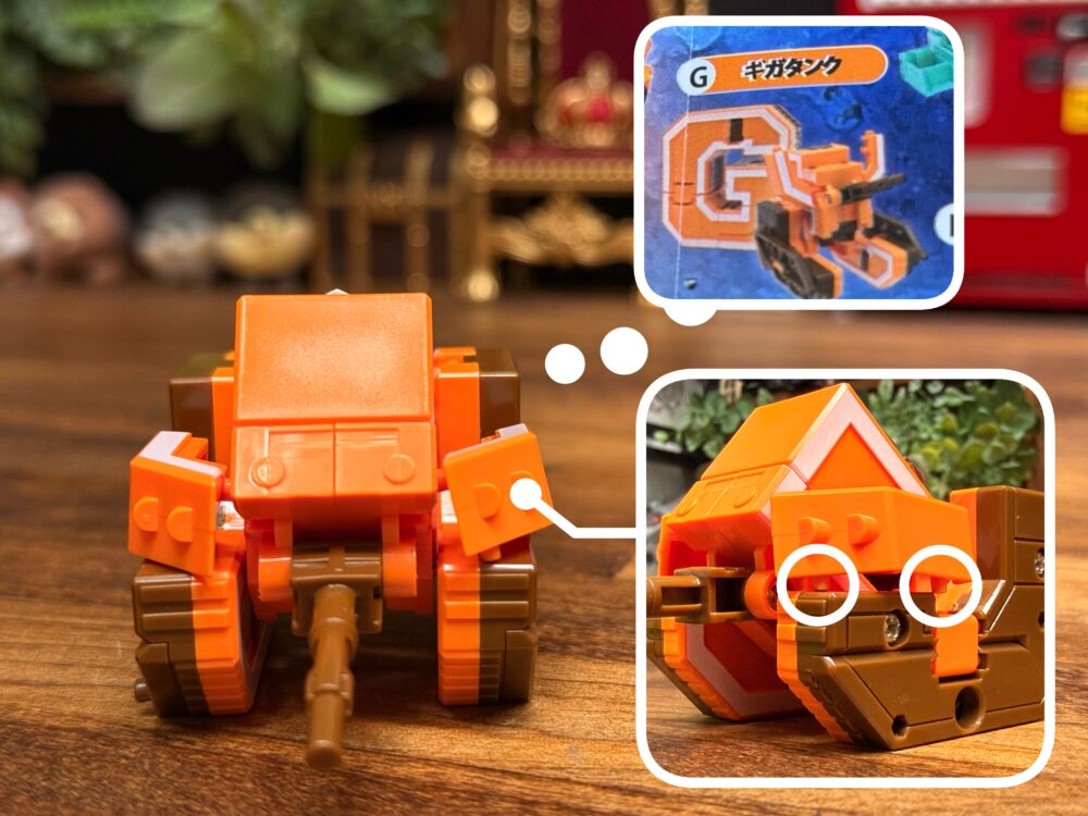 変形した姿がこちら。「G.ギガタンク」はミニブックに書かれた形態に変形させました。こっちの方がカッコいいよね。