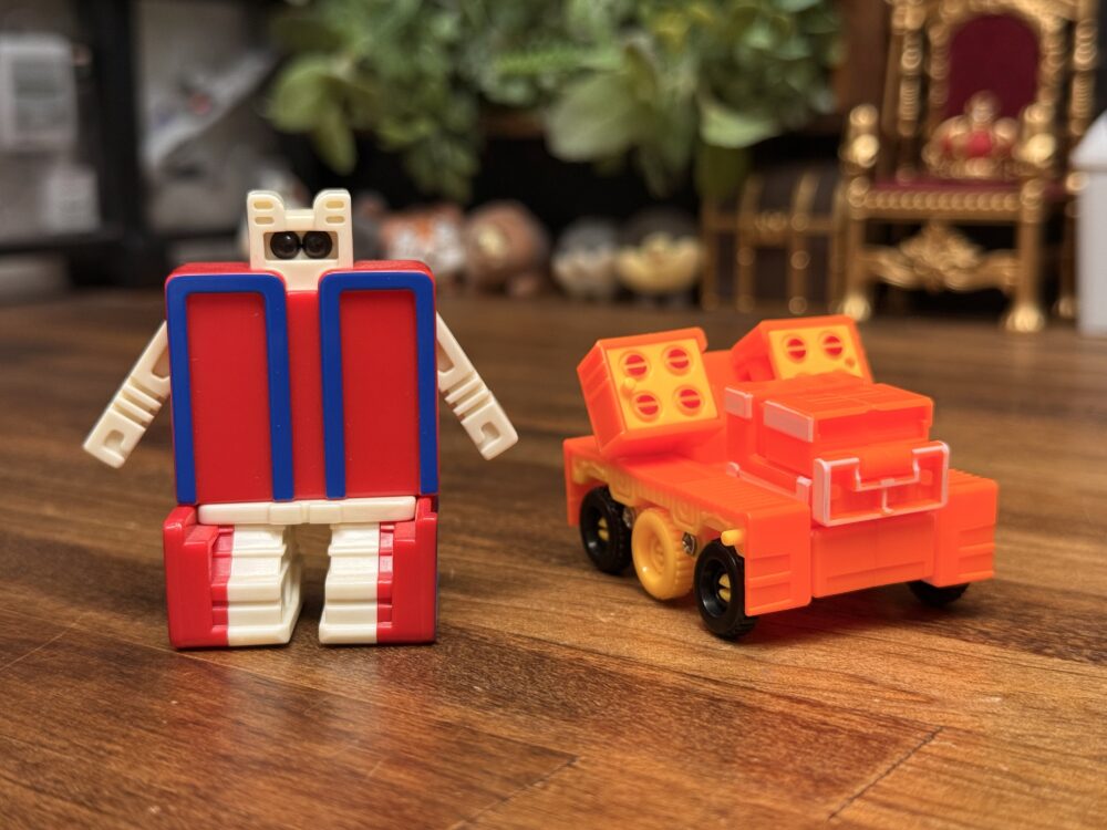 簡単な変形で可愛いロボになる「アルファボット」に対して程よい変形工程でエイゴビークルになる「アルファベッター」。