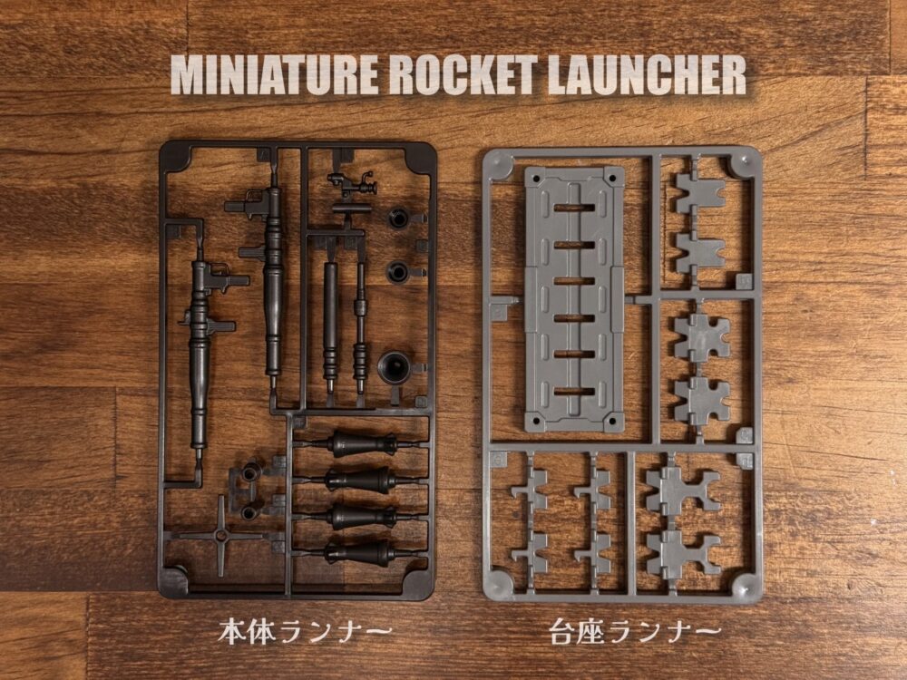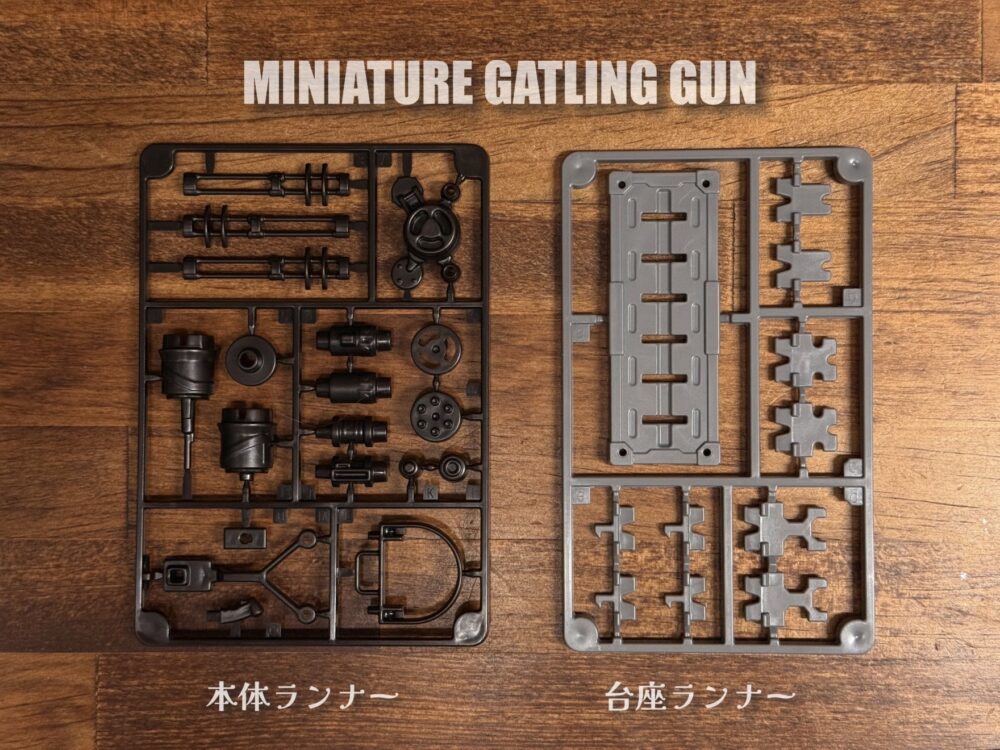 内容物は本体ランナー1枚と台座ランナーが1枚です。台座ランナーは「ミニチュアウェポンシリーズ」で統一されて同じモノが付属しています。