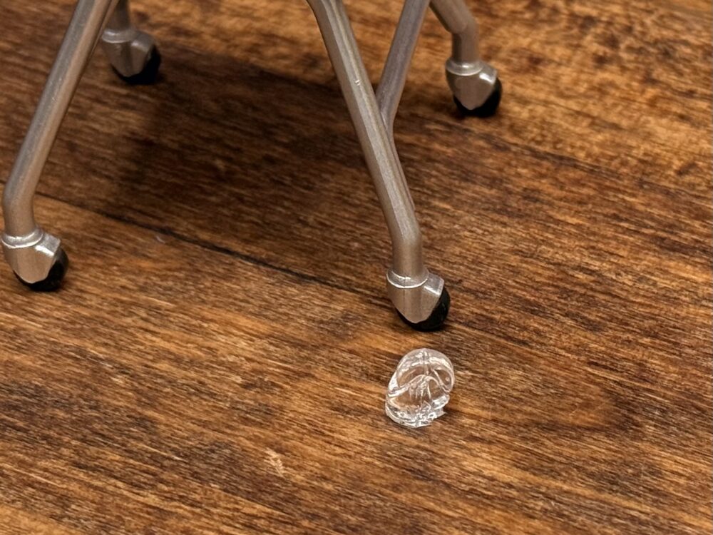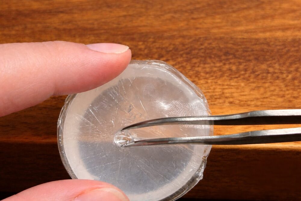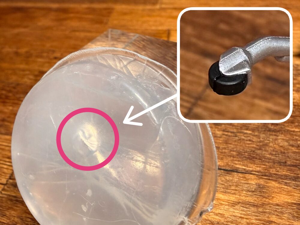 気泡ができて場合は細い竹串などで気泡を突いて無くしましょう。パーツ内部にある気泡は問題ないですが、枠の外側に気泡が付いてる場合は複製したパーツに欠けができてしまいます。