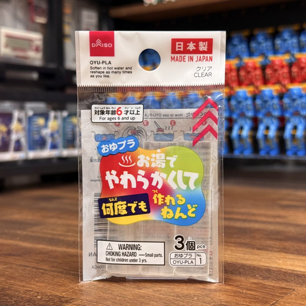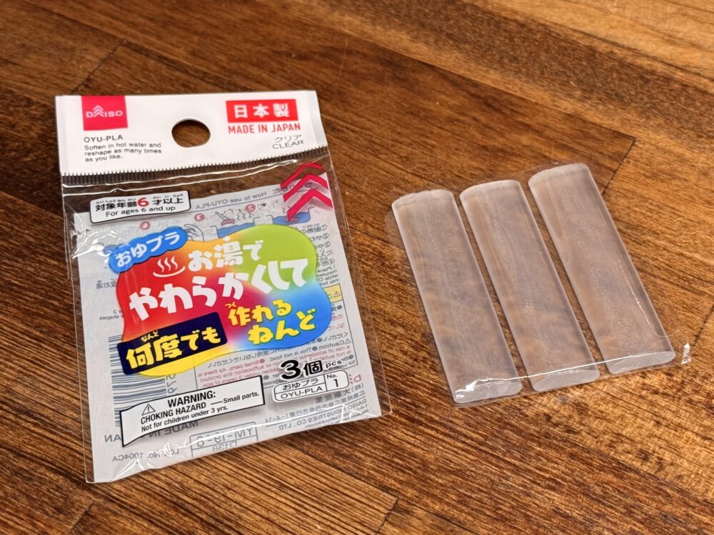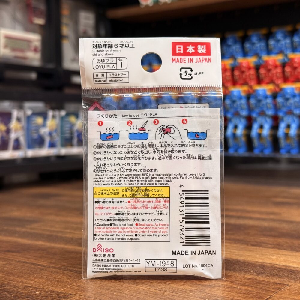複製する為に必要な型取りはこちらの有名なDAISOで買える「おゆプラ」です。数年前に購入したモノなので、もしかしたらパッケージとか変わっているかも知れません。パッケージの裏側に使い方が載ってます。