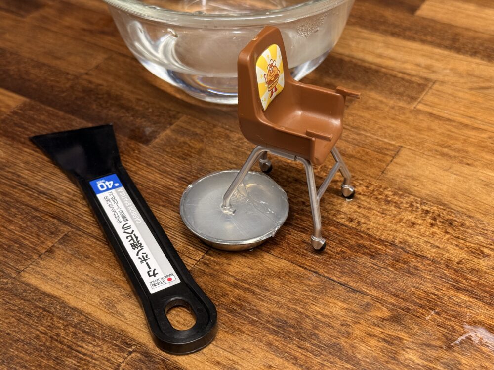 「おゆプラ」は冷めると元の硬さに戻るので、型取り前にもう一度熱いお湯に入れて「おゆプラ」を柔らかくしてから使いましょう。