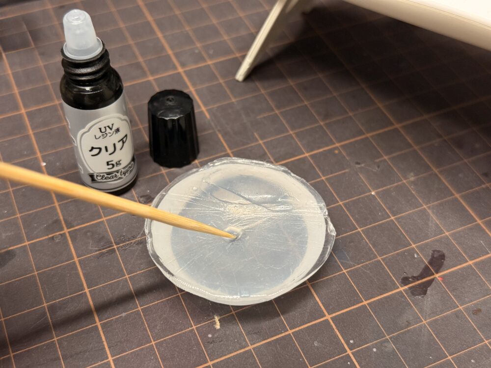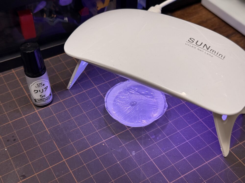 問題になる気泡が無くなれば「UVライト」を照射します。照射時間は使用する「UVレジン液」により異なります。