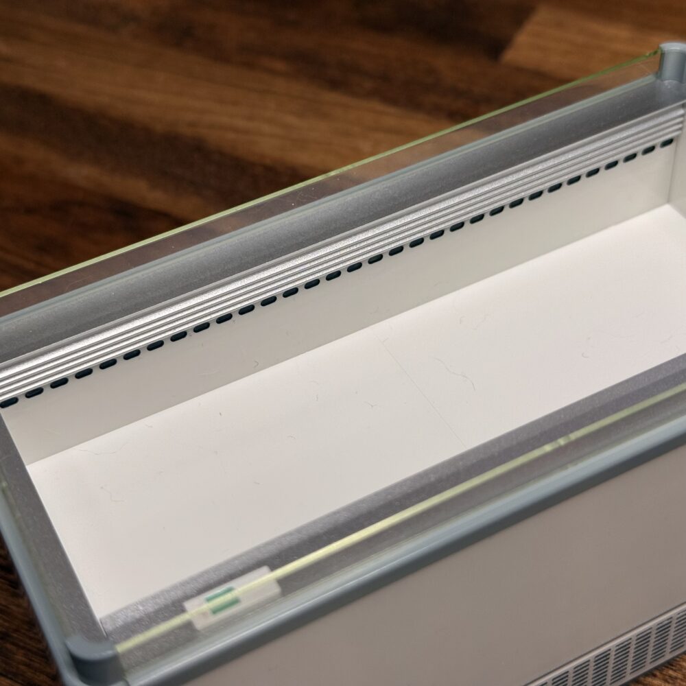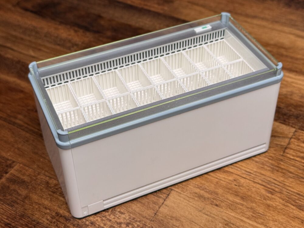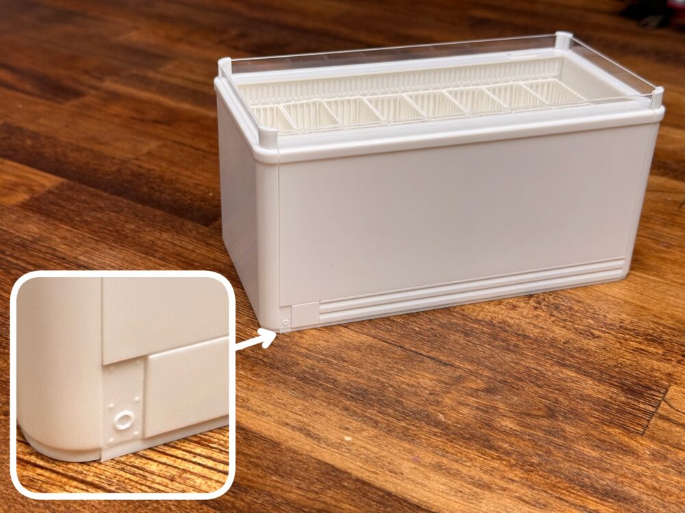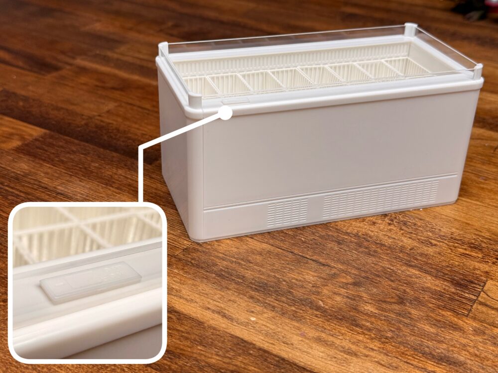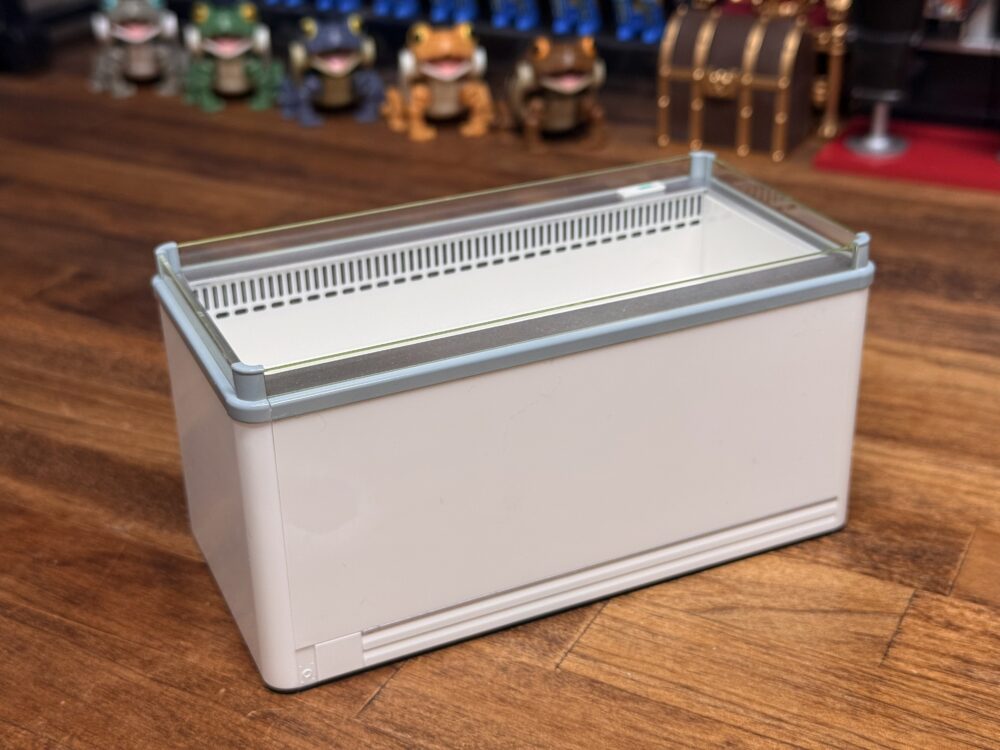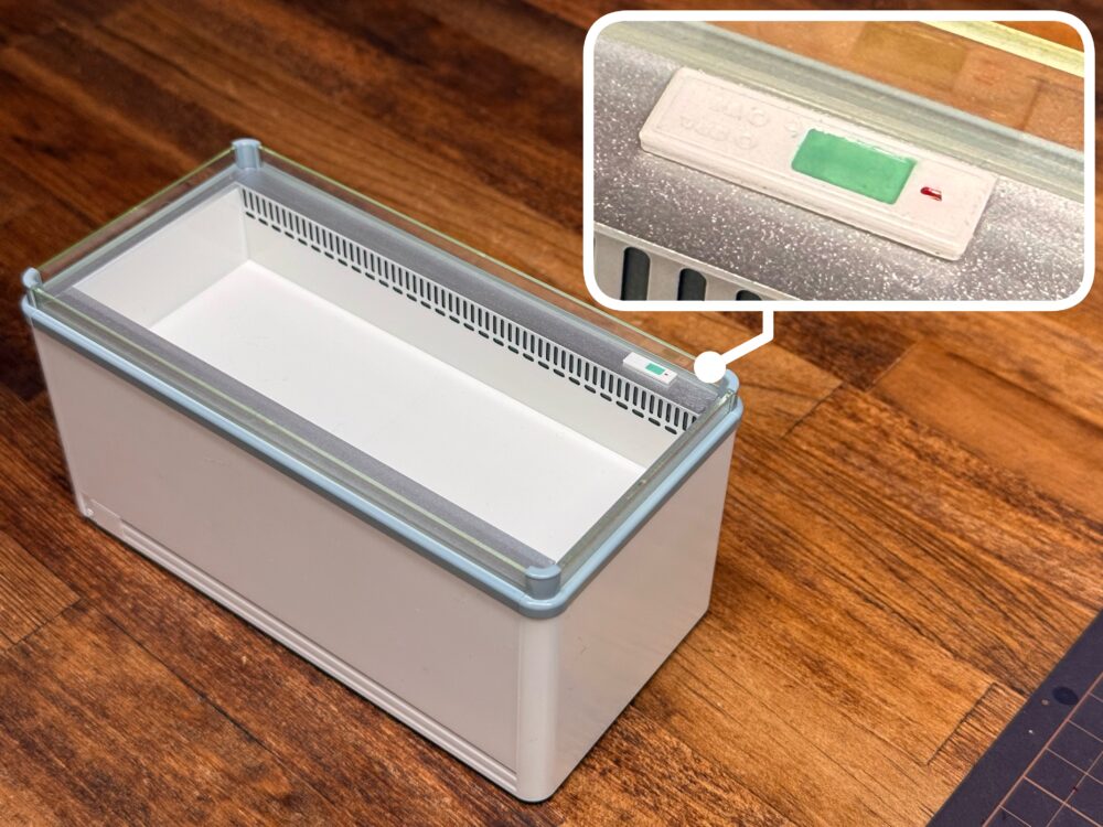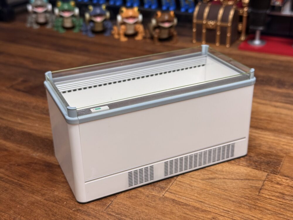 造形はモデルにされたと思われる「パナソニック 冷凍ショーケース 平型タイプ」をほぼ完璧に1/12スケールに縮尺したレベルの仕上がりです。