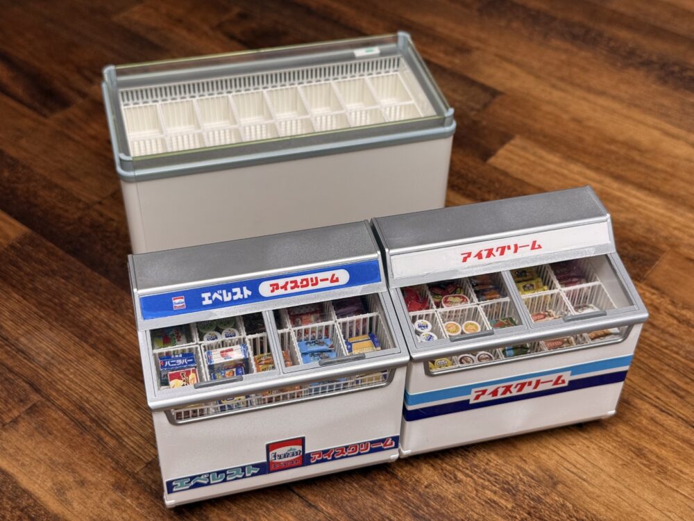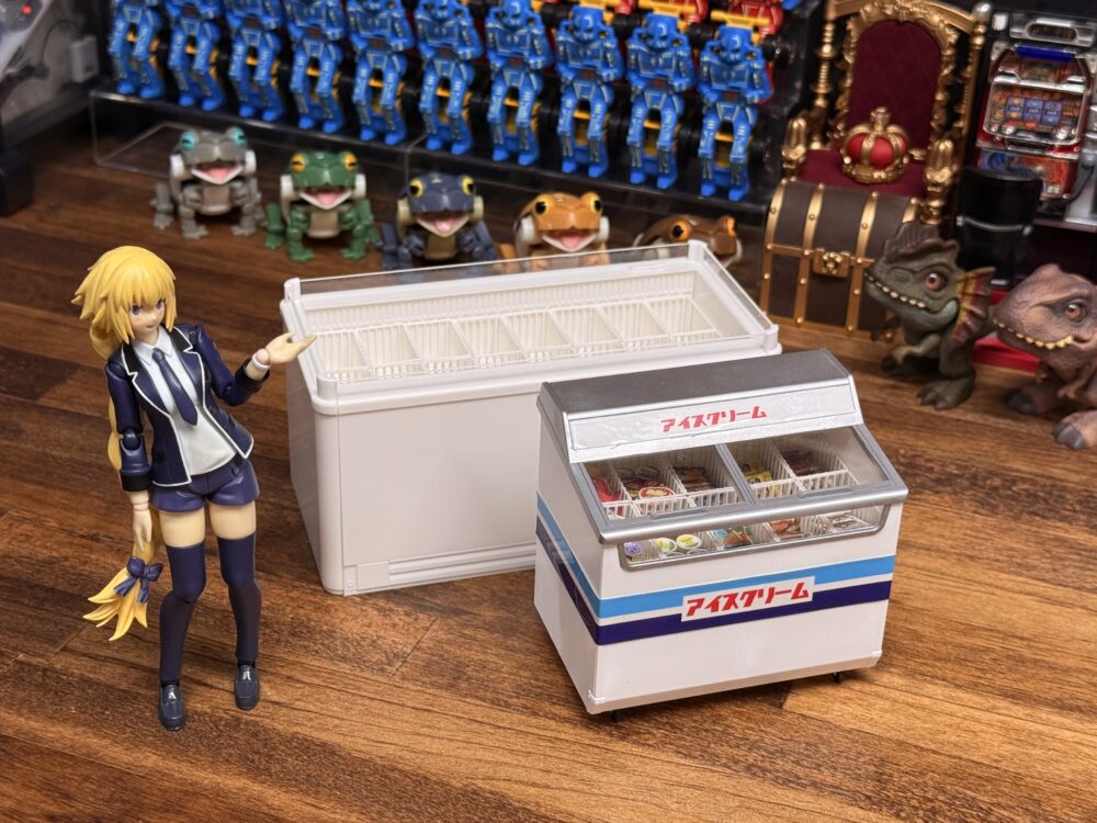 PINKTANKの「1/12 アイスクリーム用冷凍ショーケース 」と大きさ比較。並べて見るとその大きさが分かって貰えると思います。