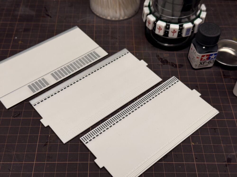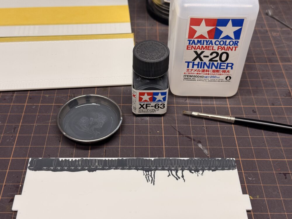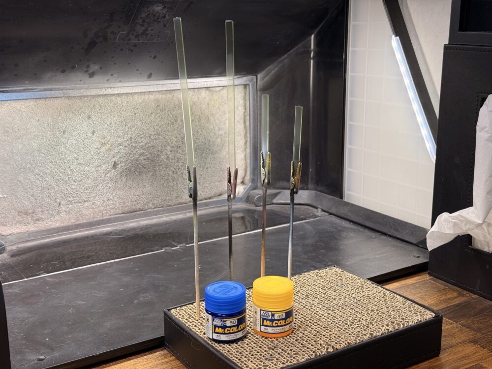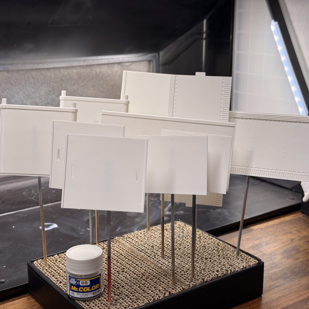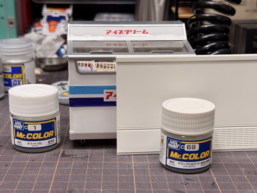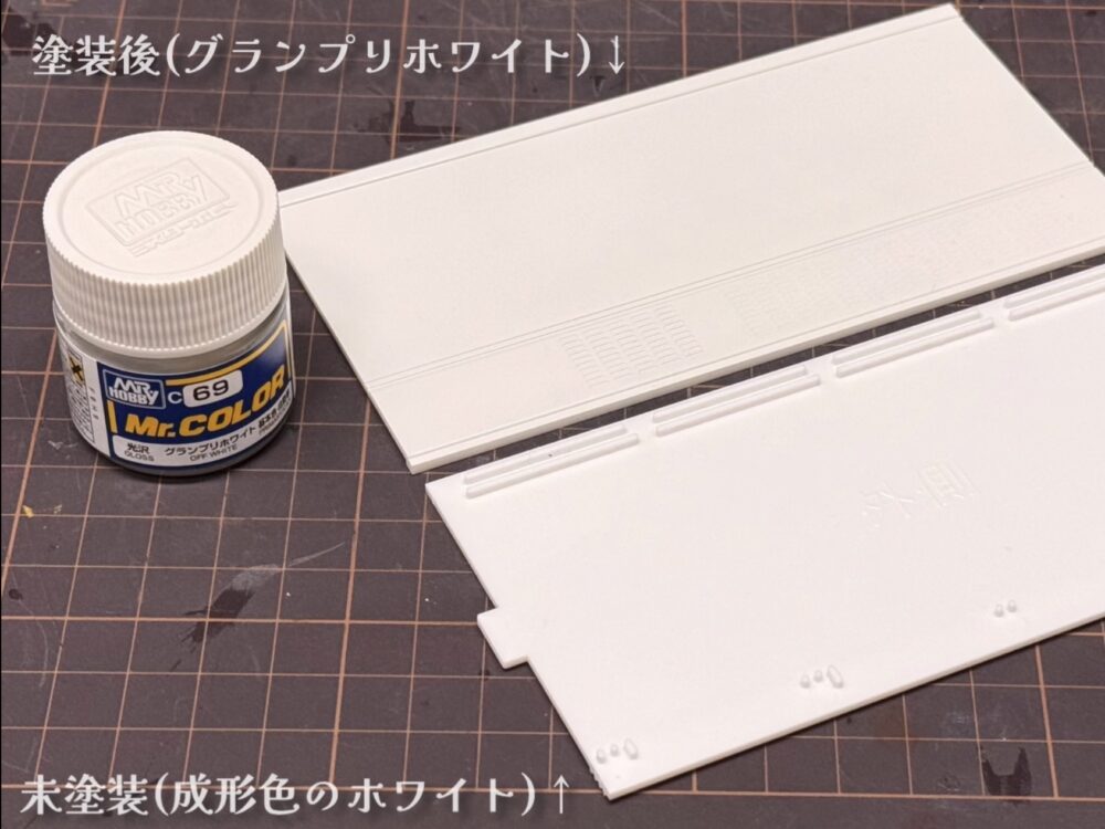 いつも白といえば「Mr.COLOR C-1」を使用してましたが、あまり成形色と変わり映えしないので今回は業務用っぽい「Mr.COLOR C-69(グランプリホワイト)」にしました。