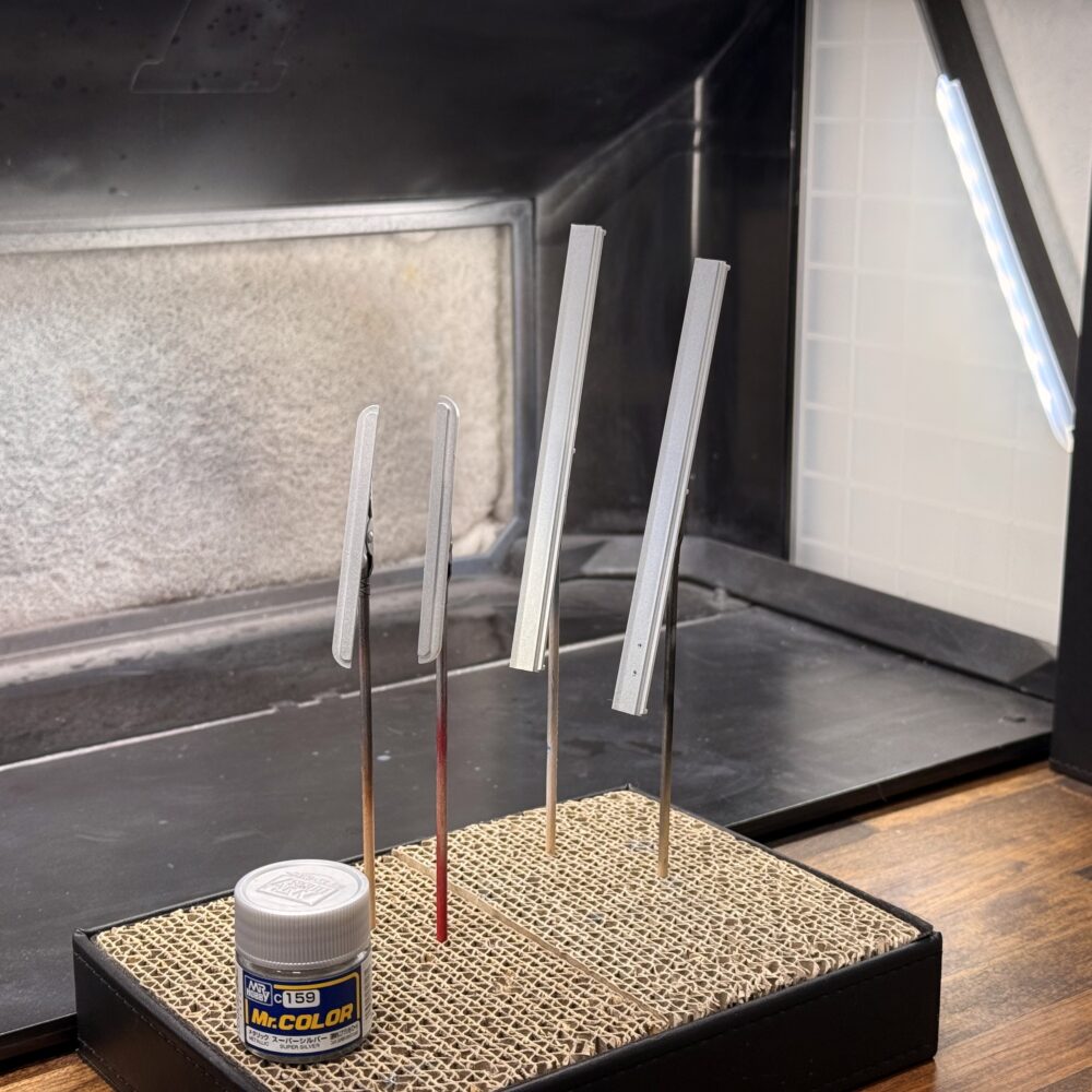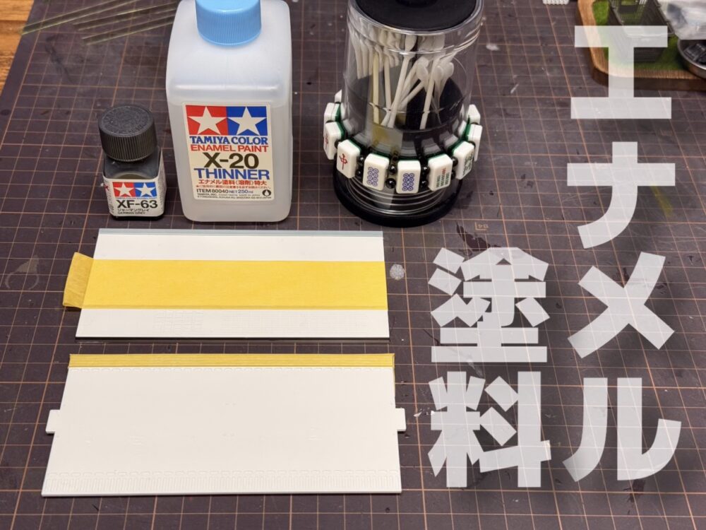 そして当ブログでは定番のエナメル塗料を使った塗装です。今更知りましたがエナメル塗料ってプラスチックに直接塗ると割れたりするみたいなので気をつけて下さいね。