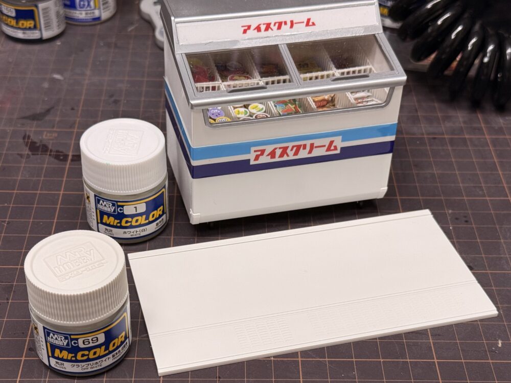 この中に1/12アイスクリームを入れればそれなりに雰囲気は出ると思いますが、やはり真っ白だとリアルさが欠ける為、塗装はした方が良さげです。