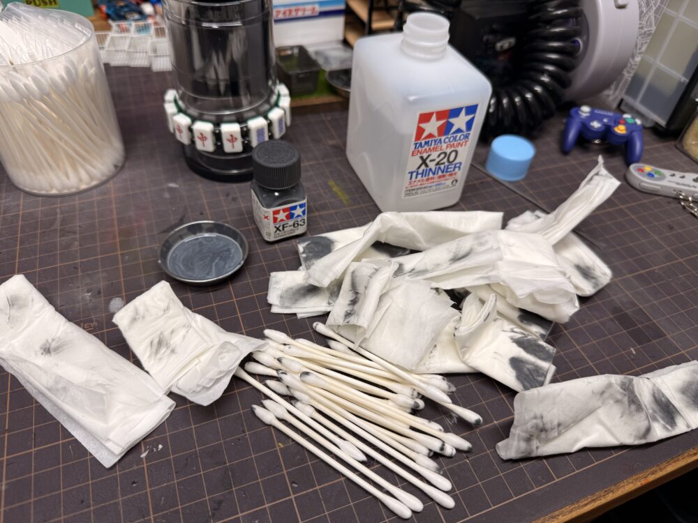 エナメル塗料の拭き取りのコツは汚れた(塗料の付いた)部分は使用せず、一拭きしたら汚れていない面を使い。モールドの中の塗料を拭き取らない様に押し当てない様に軽く優しく拭き取りましょう。
