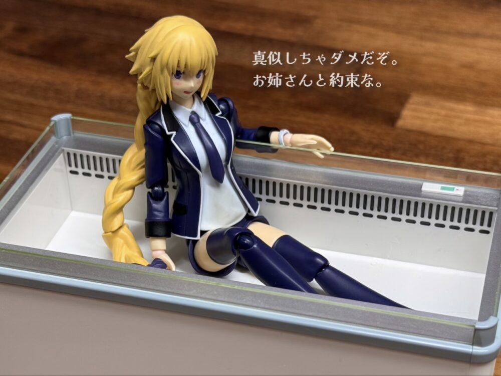 「1/12 アイスクリーム用バスケット」と「1/12 アイスクリーム」が無い場合はバイトテロごっこが楽しめます。※figmaルーラーは寝かせる事はできなかったので座らせてます。