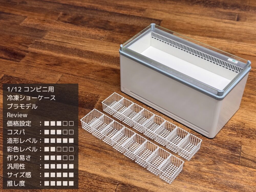 PINKTANKから発売された「1/12 コンビニ用冷凍ショーケース プラモデル」のレビューでした。