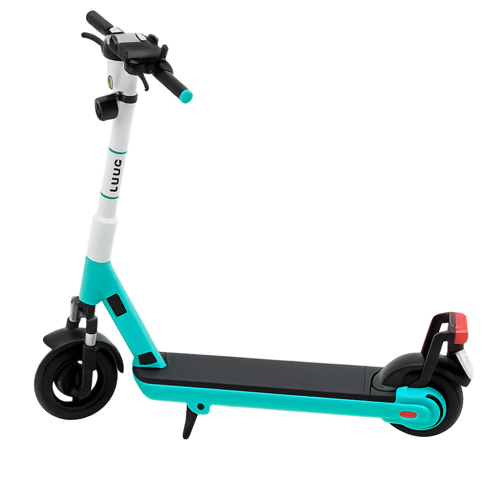 LUUPの電動キックボードの側面。ホワイトとループグリーンがとても綺麗です。