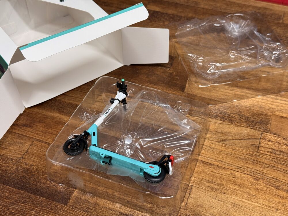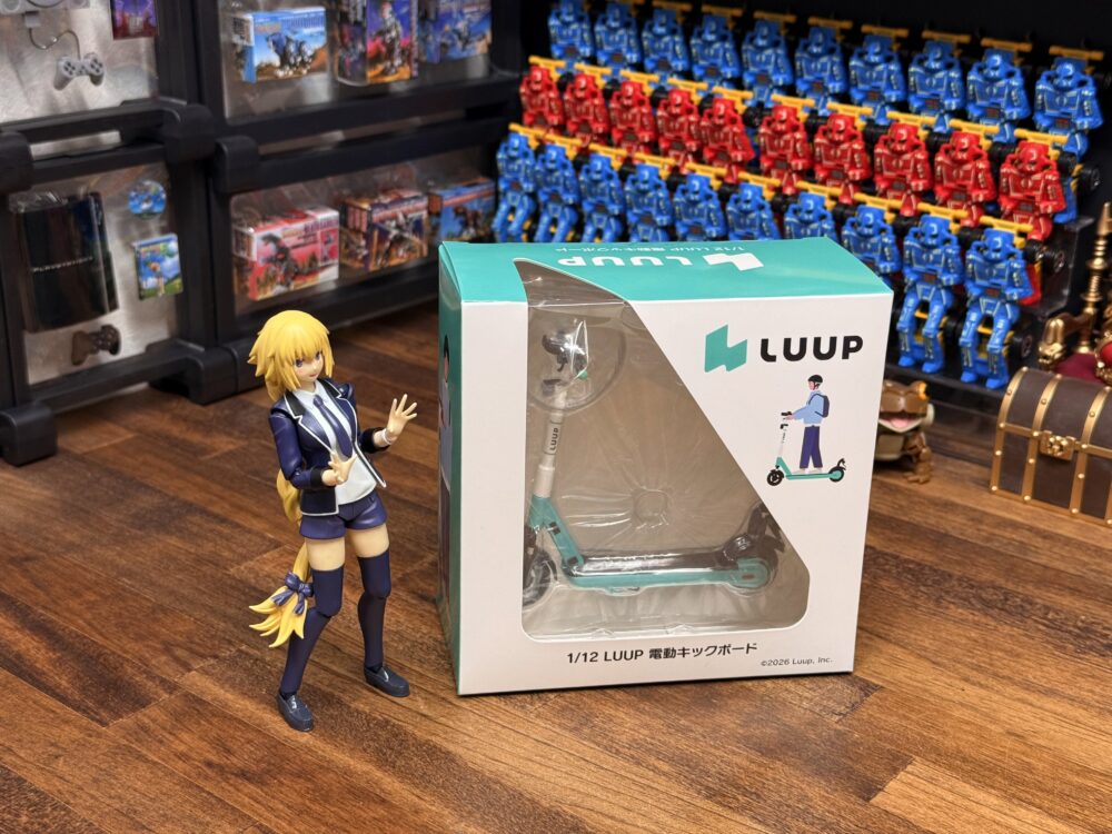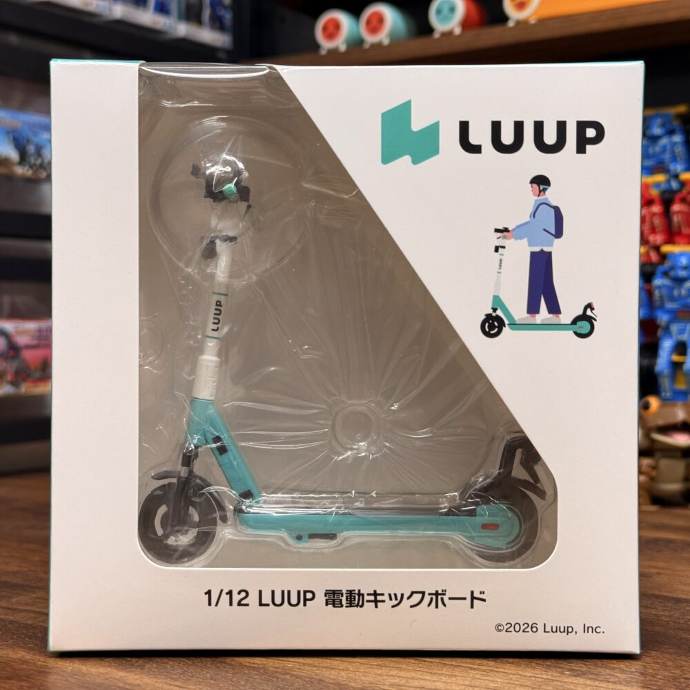 電動キックボードのシェアリングサービス「LUUP」の電動キックボードが可動フィギュアに合わせ易い1/12スケールで製品化されました。完成品とプラモデルの2タイプなのでお好きな方が選べます。