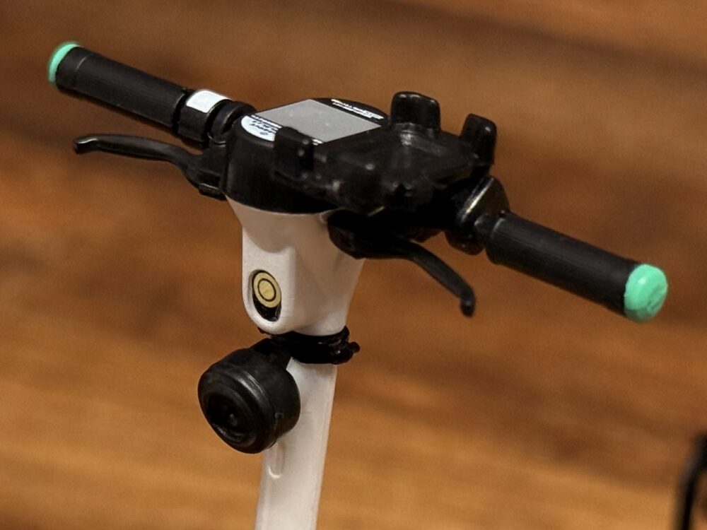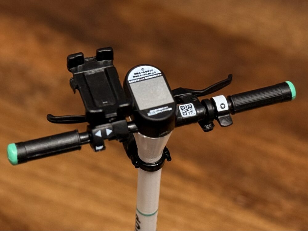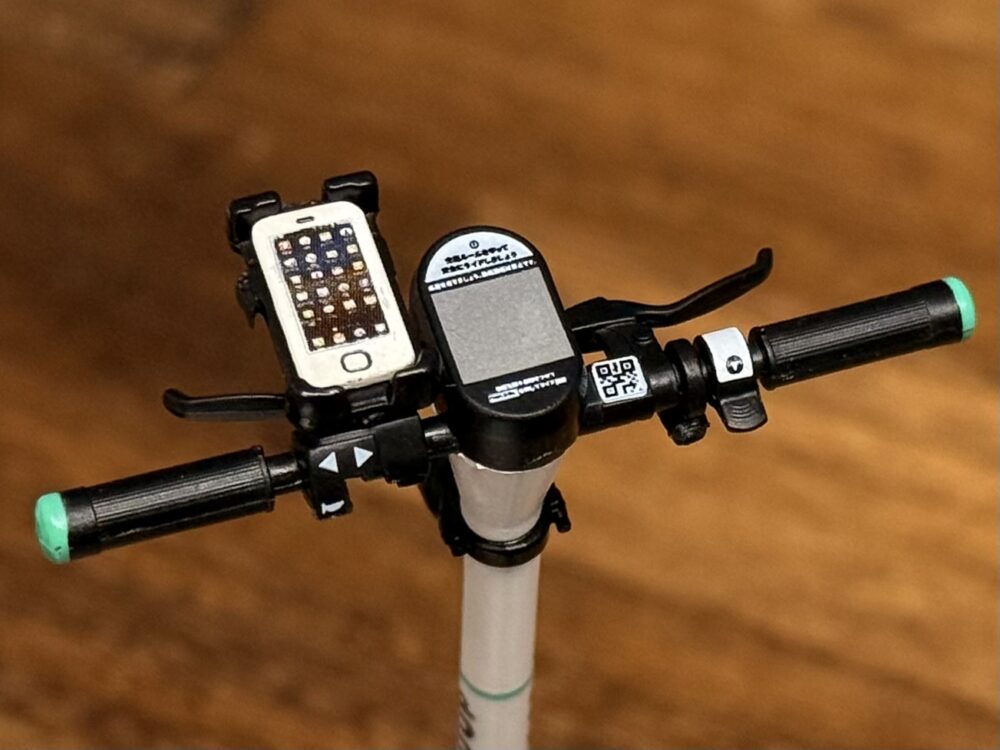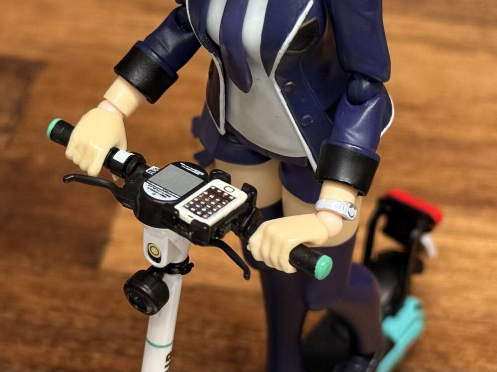 手持ちのミニチュア小物ケースに入ってた1/12スマホをLUUP電動キックボードのスマホホルダーに載せるとぴったり!