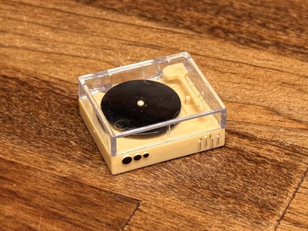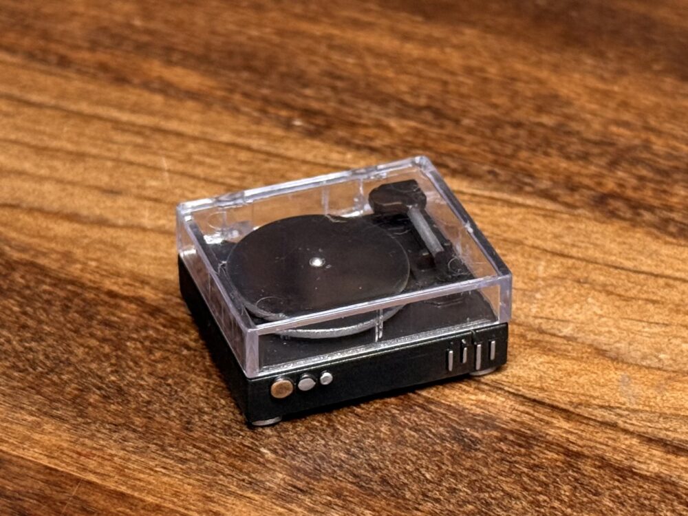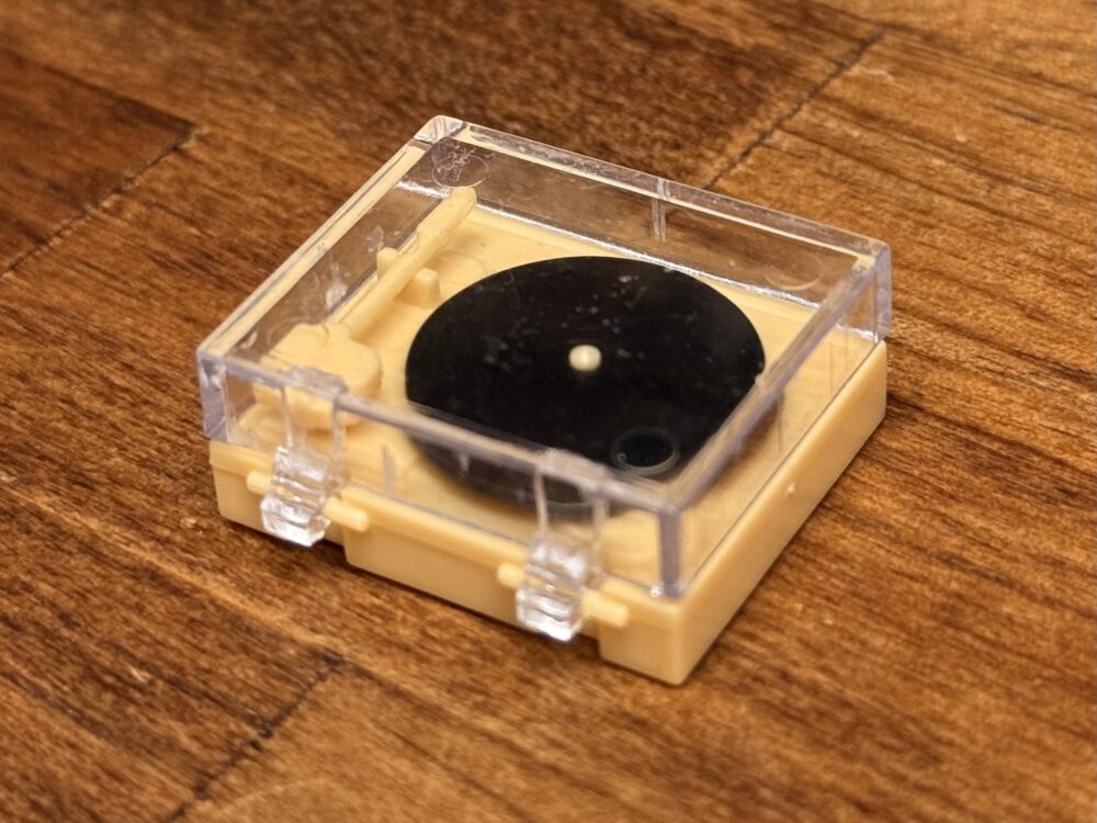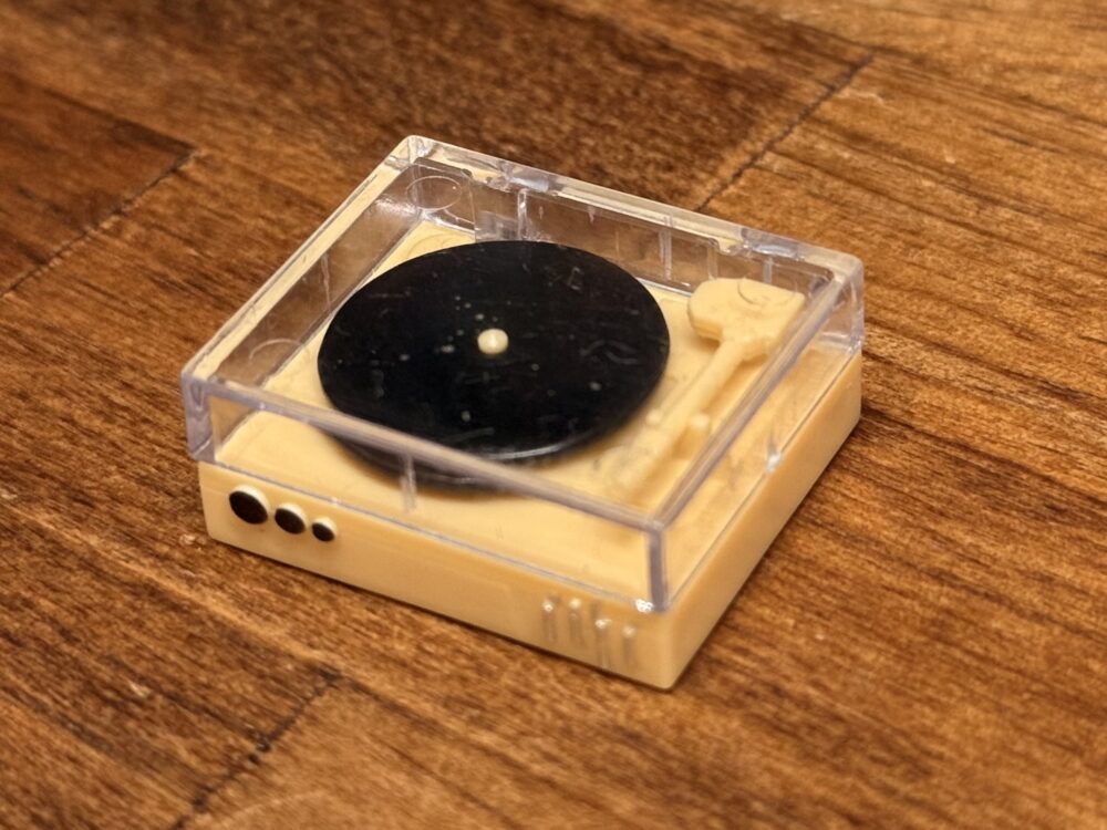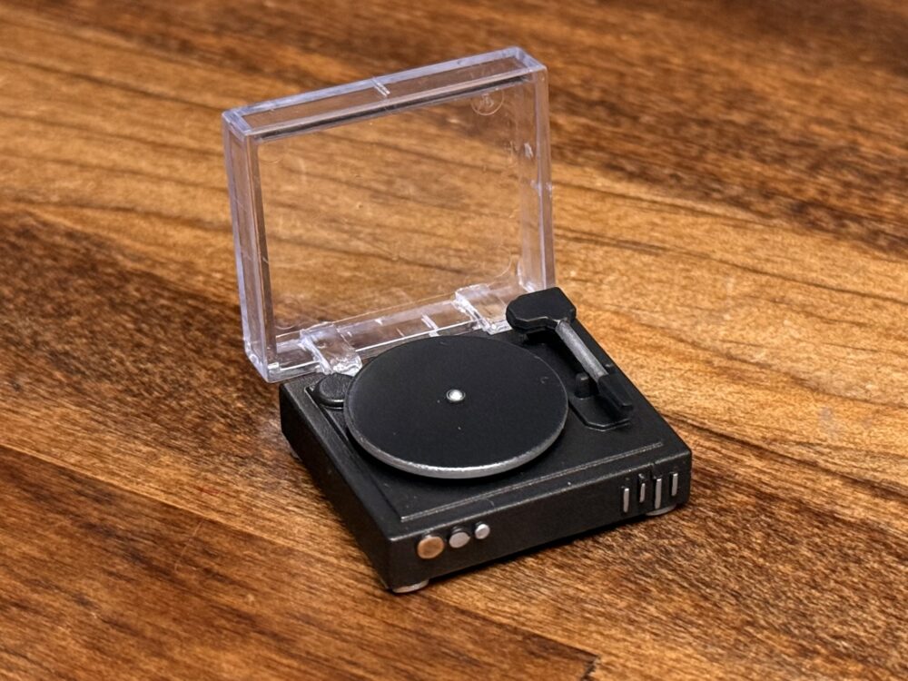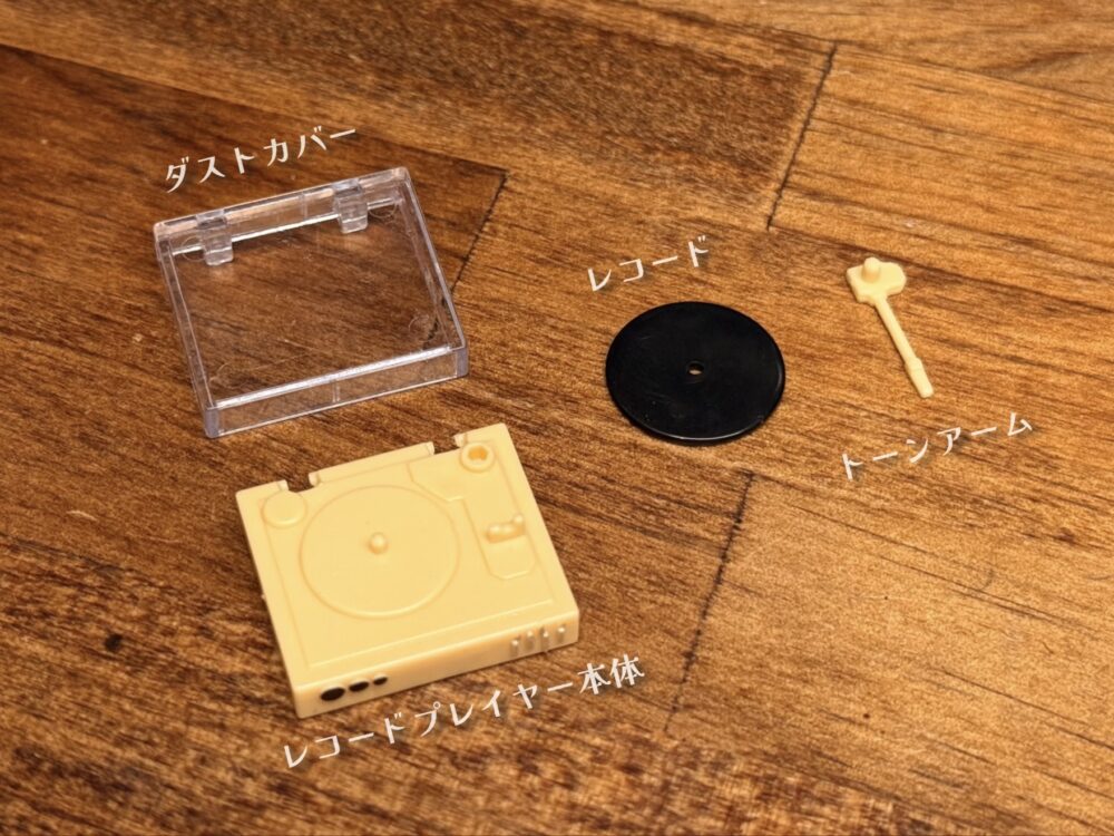 内容物は組み立て済みの「レコードプレイヤー」のミニチュアのみになります。