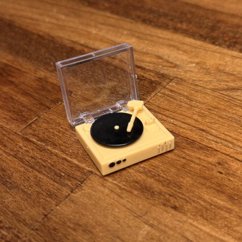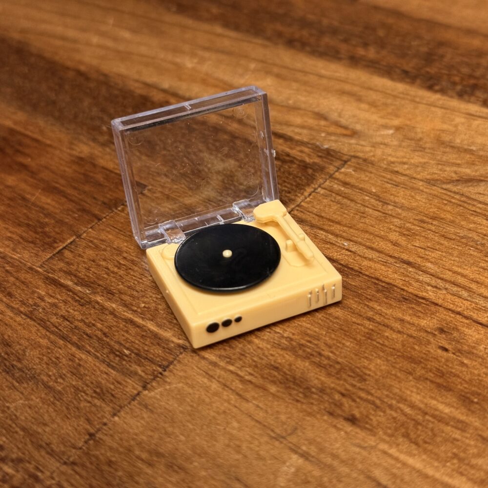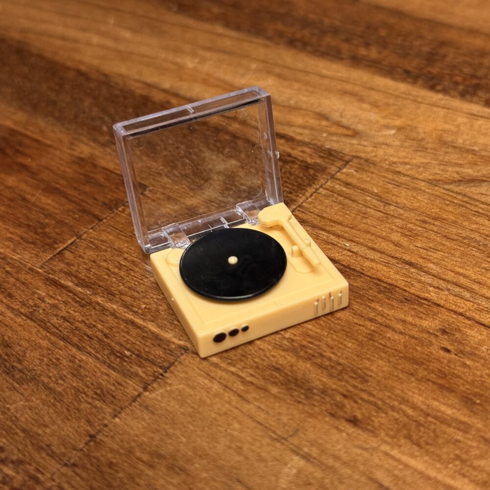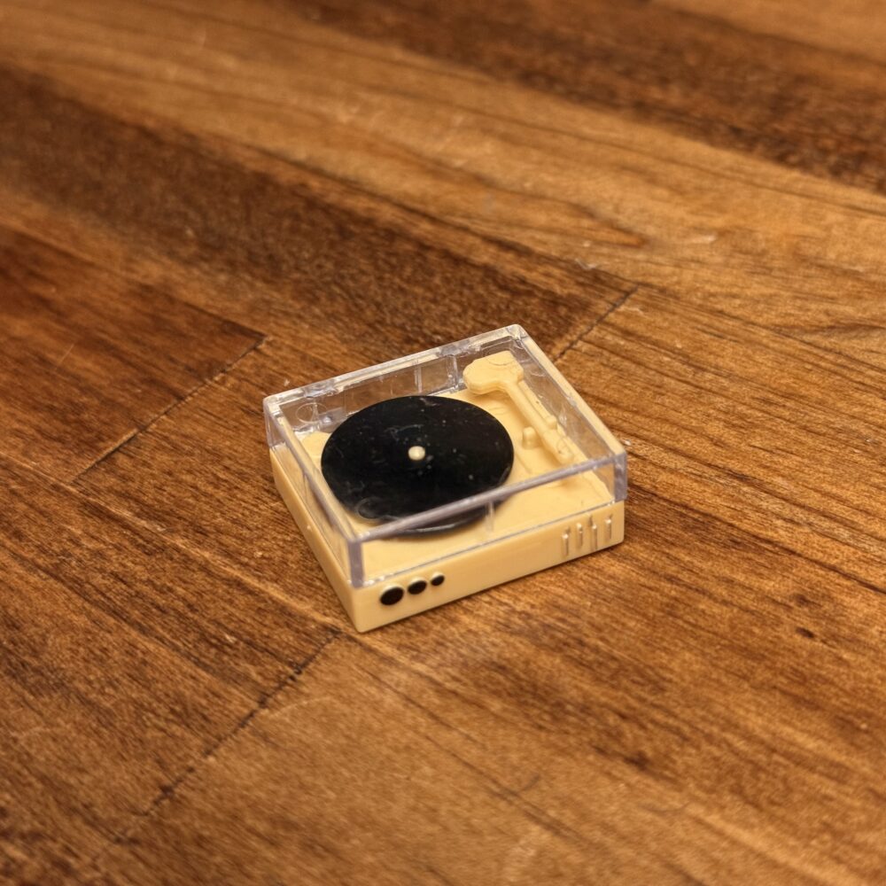 内容物は組み立て済みの「レコードプレイヤー」のミニチュアのみになります。