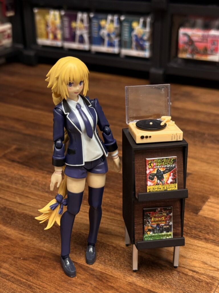 ギミック的にはちゃんとダストカバーが開閉しレコードも取り外しが可能でトーンアームが動くので可動フィギュアに合わせても色んなシーンが再現できると思います。